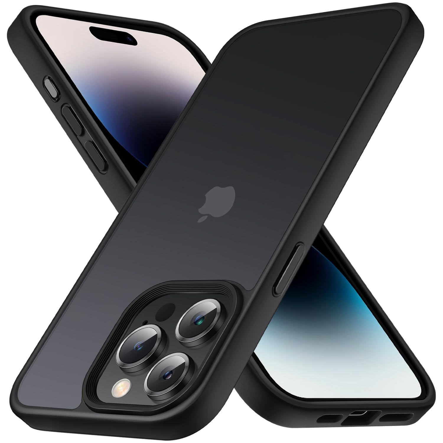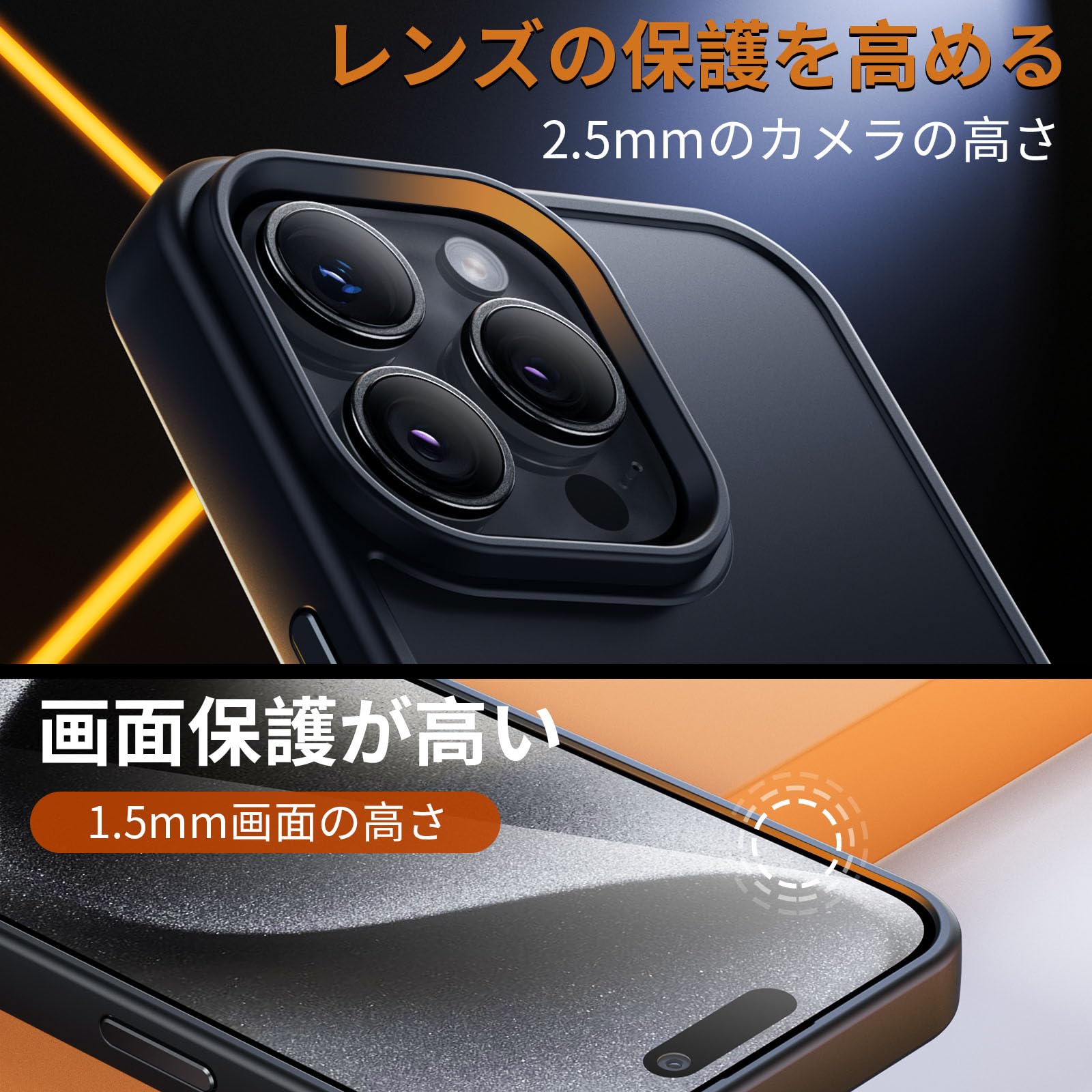 【在庫処分】COSOIK iPhone 15 Pro 用 ケース 半透明 衝撃吸収 米軍MIL規格取得 マット感 黄ばみなし レンズ全面保護 耐衝撃ストラップホール付き 6.1インチ アイフォン 15 Pro用カバー ブラック