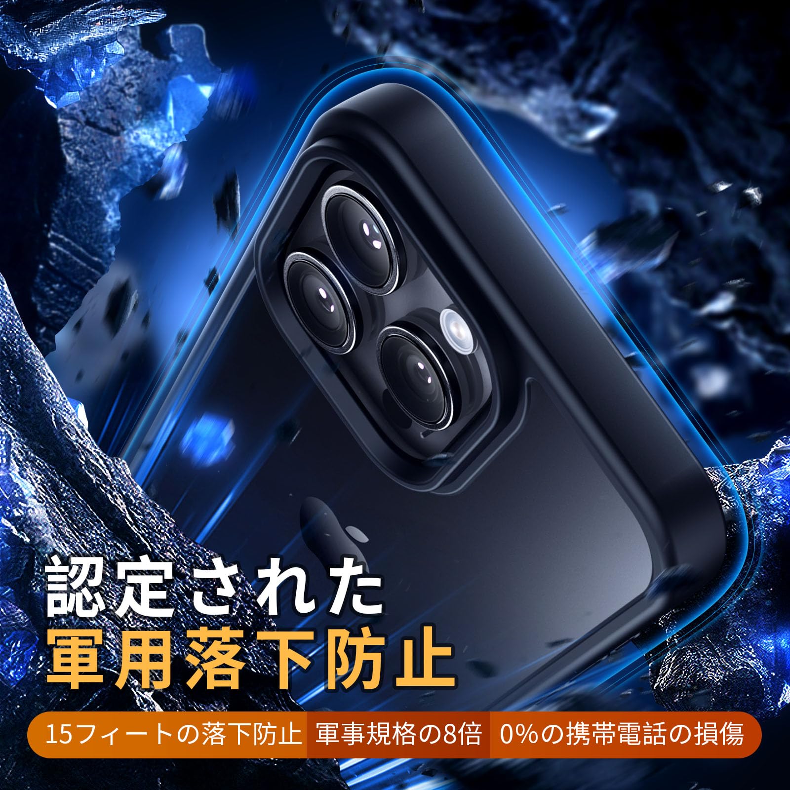 【米国MIL規格取得・超高耐衝撃性】 米軍基準のタフネスを誇るiPhone 15 Proケース。 エアクッション技術を採用した四隅のデザインは、強力な全周保護システムを提供し、四隅のエアクッションが損傷を吸収し、あらゆる方向から携帯電話を保護します。