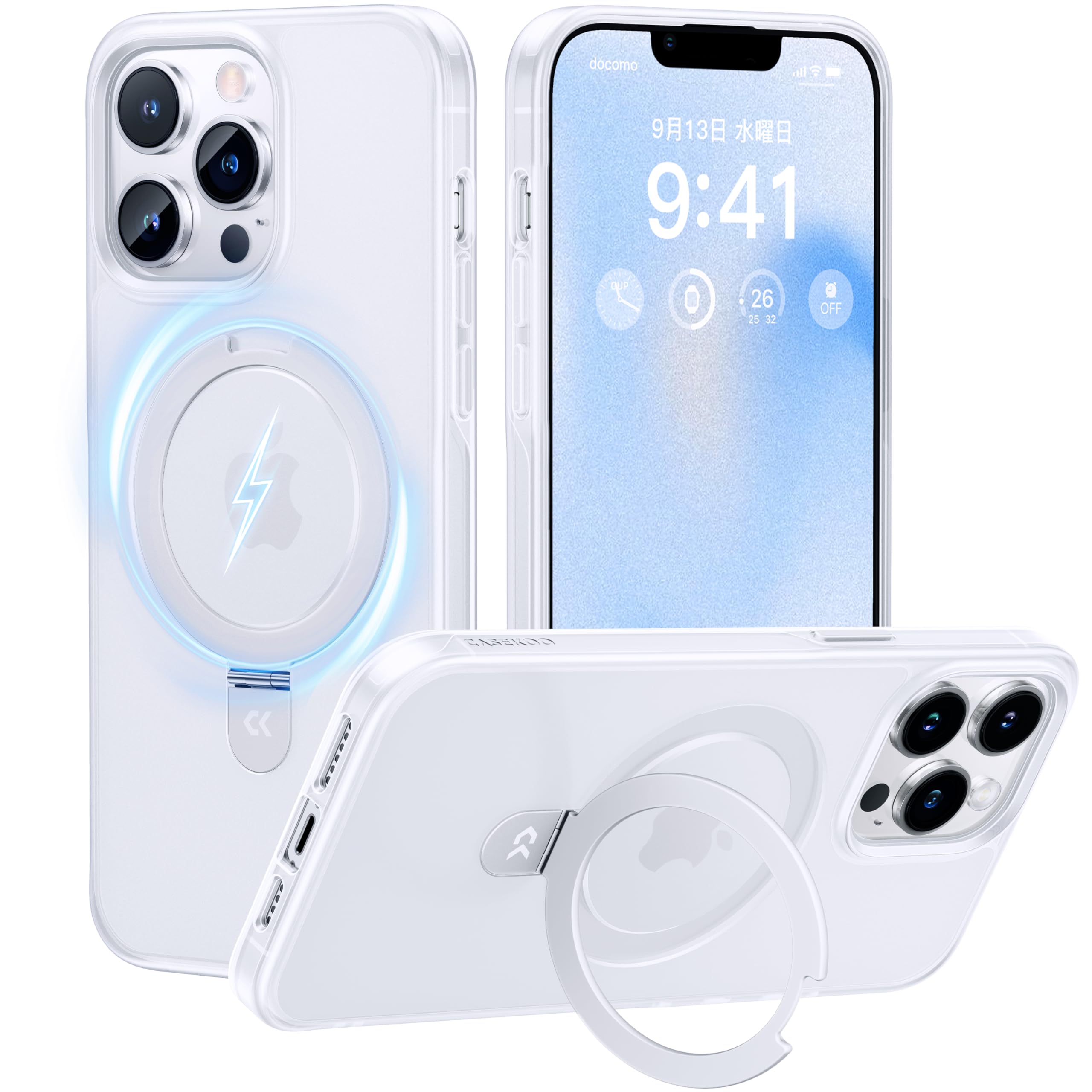 【在庫処分】【8年間の技術結晶!4in1超万能モデル】CASEKOO iPhone13ProMax 用 ケース 隠しスタンド 横縦両立 米軍MIL規格 耐衝撃 MagSafe対応 スマホケース 薄形半透明 マット仕上げ 指紋防止 ストラップホール付き ワイヤレス充電対応 アイフォン 13pro max 用 ケース 6.7インチ カバー(マットクリア)