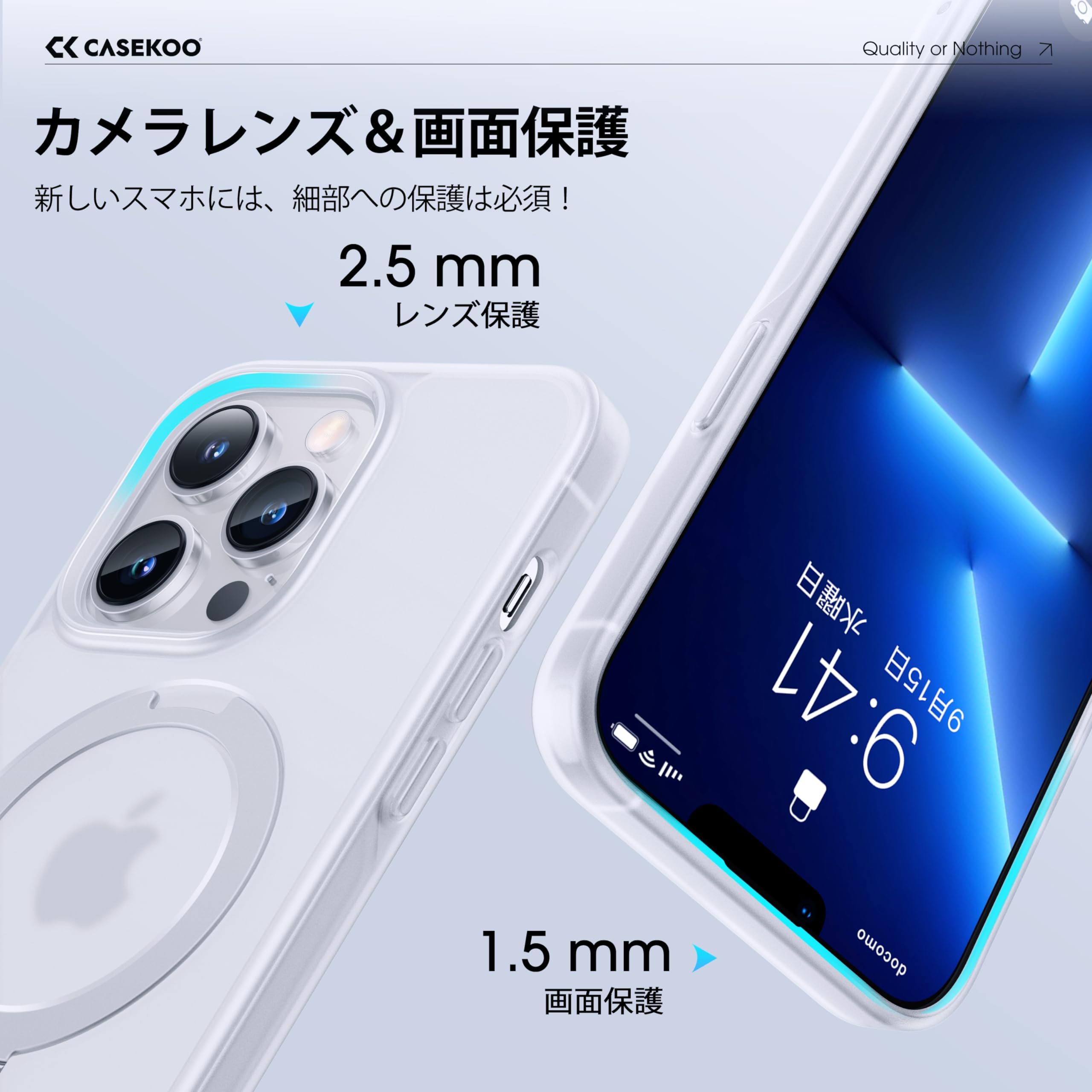 【8年間の技術結晶!4in1超万能モデル】CASEKOO iPhone13ProMax 用 ケース 隠しスタンド 横縦両立 米軍MIL規格 耐衝撃 MagSafe対応 スマホケース 薄形半透明 マット仕上げ 指紋防止 ストラップホール付き ワイヤレス充電対応 アイフォン 13pro max 用 ケース 6.7インチ カバー(マットクリア)
