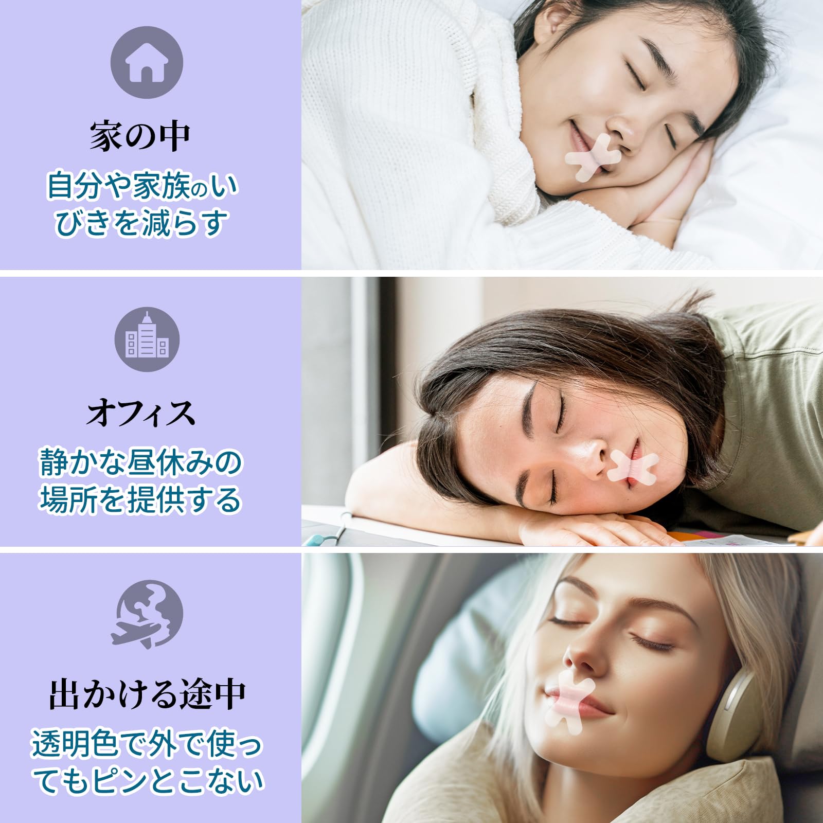 ?【睡眠の質を改善します 口テープ】 あなたやご家族がいびきの音で睡眠に影響を与えている場合は、Anloma口閉テープなどのいびき防止製品が必要です。口を閉じることでいびきを軽減します。 そうすれば、あなたも家族もぐっすり眠ることができます。