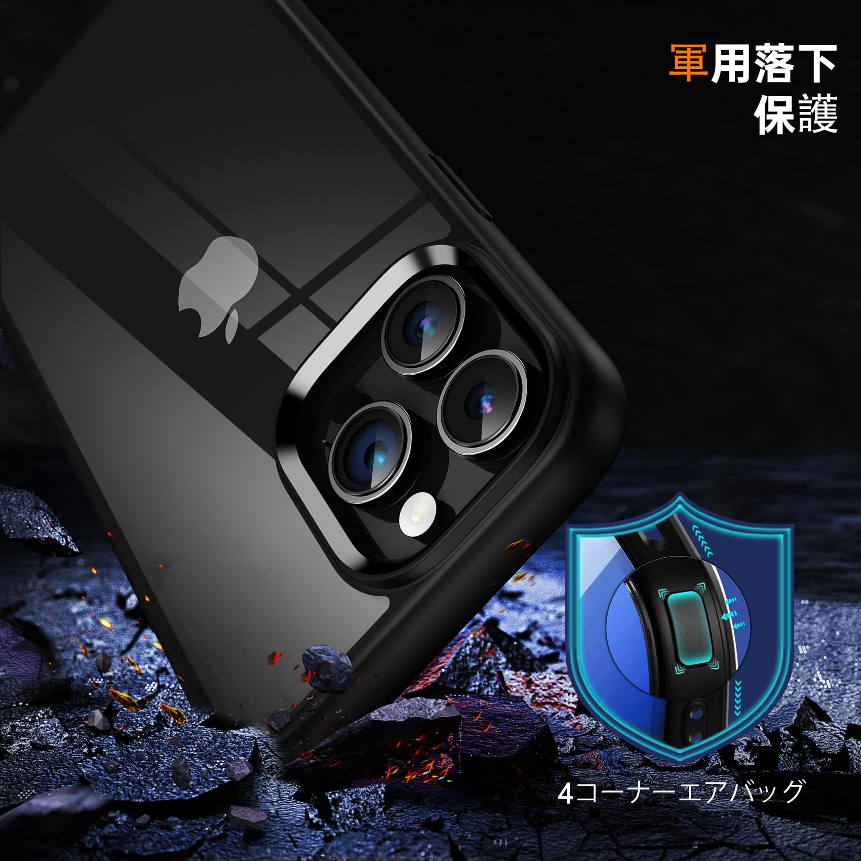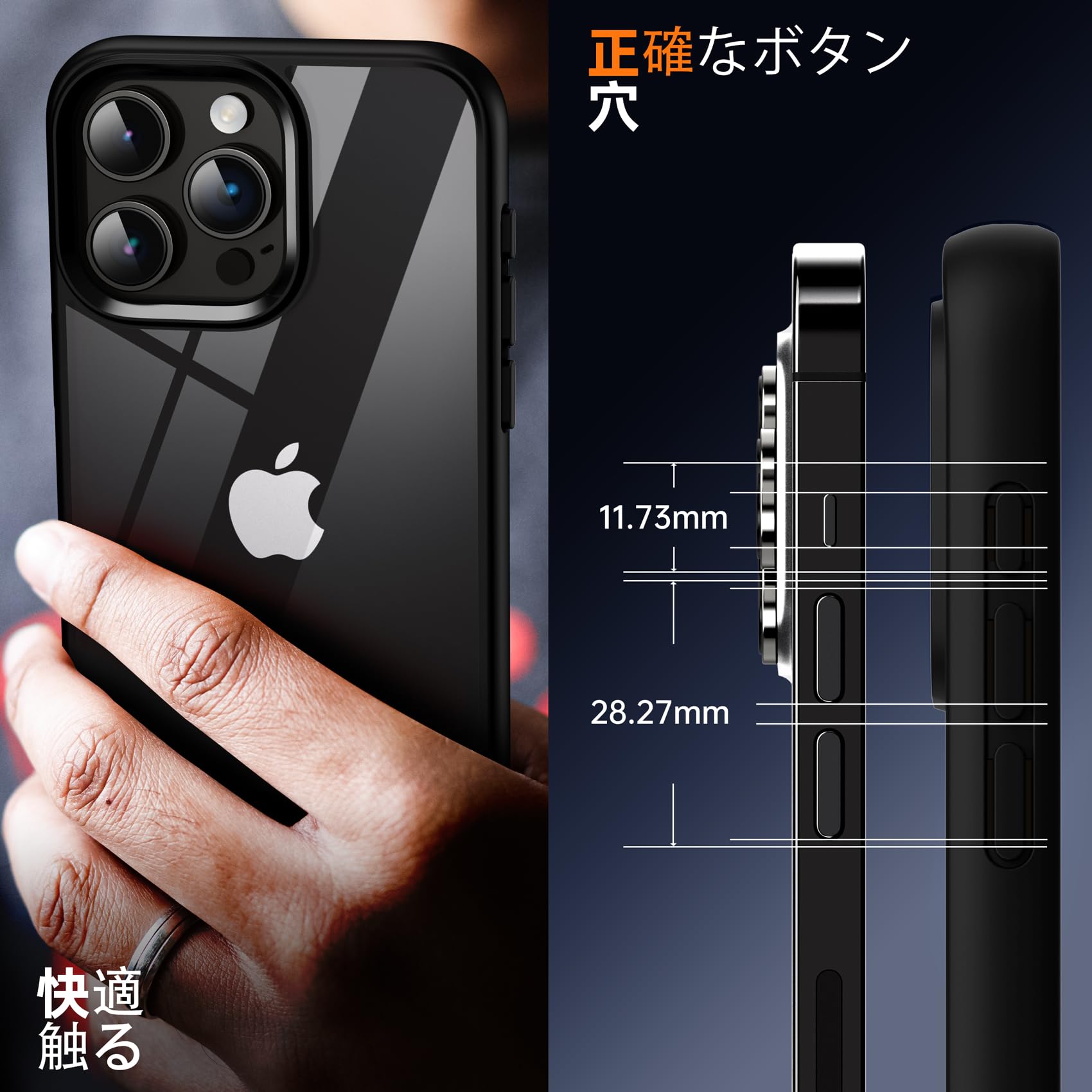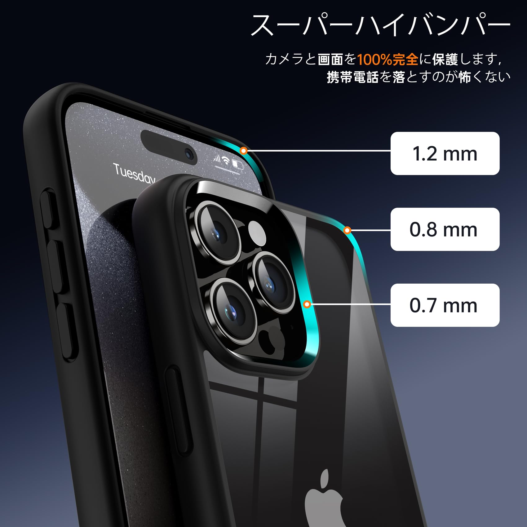 【数量限り】Supdeal iPhone 15 Pro Max用耐衝撃透明ケース 米軍MIL規格 SGS認証 黄ばみ防止 ワイヤレス充電対応 ストラップホール付き 耐久性 クリアで透明なハード背面パネル ソフトシリコンエッジ アイフォン15 プロマックス スマートフォン保護カバー 6.7インチ(ブラック)