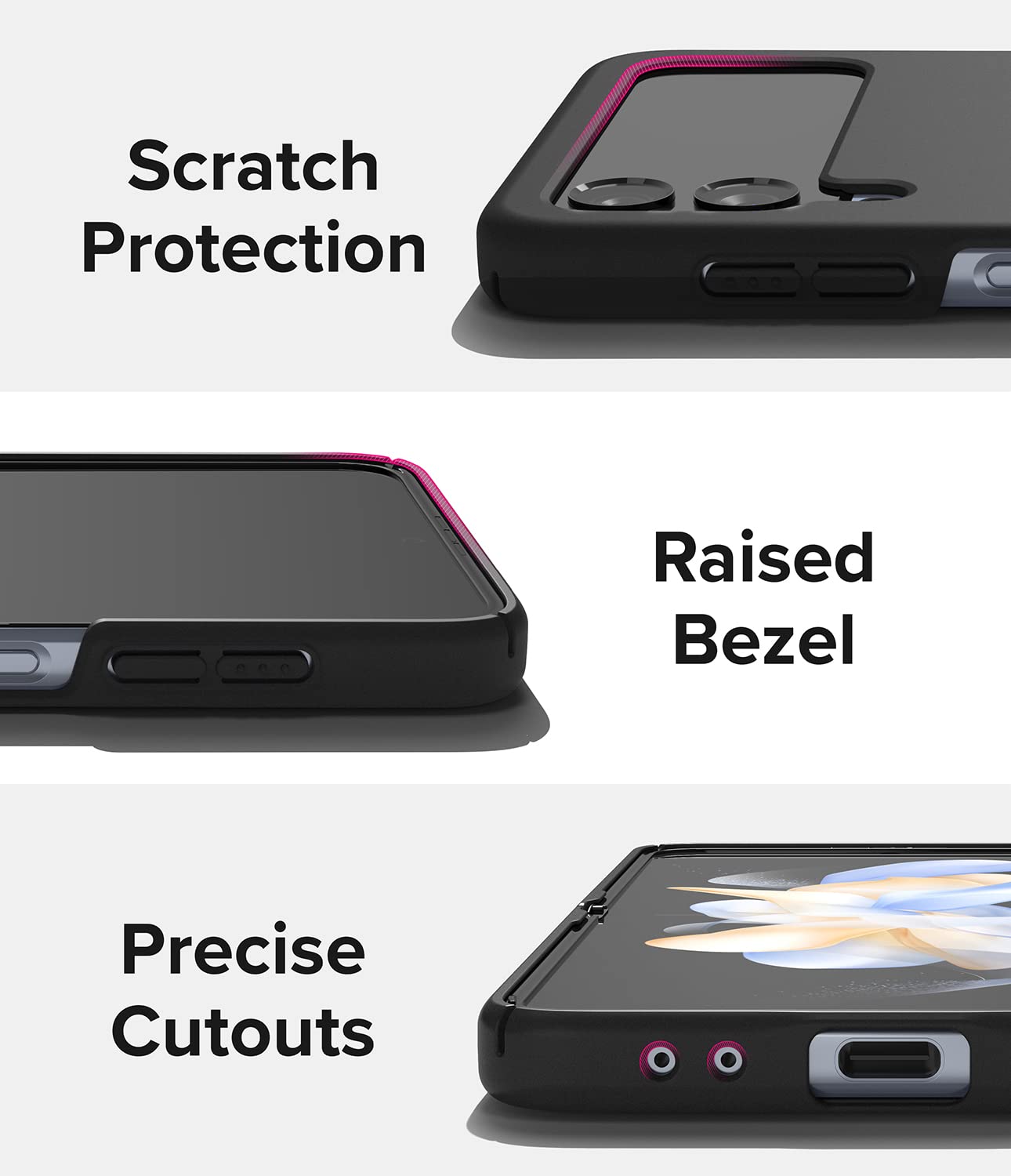 プレミアムのツーピース構造で、ポートやフロントスクリーンやボタンに干渉することなく設計されています。