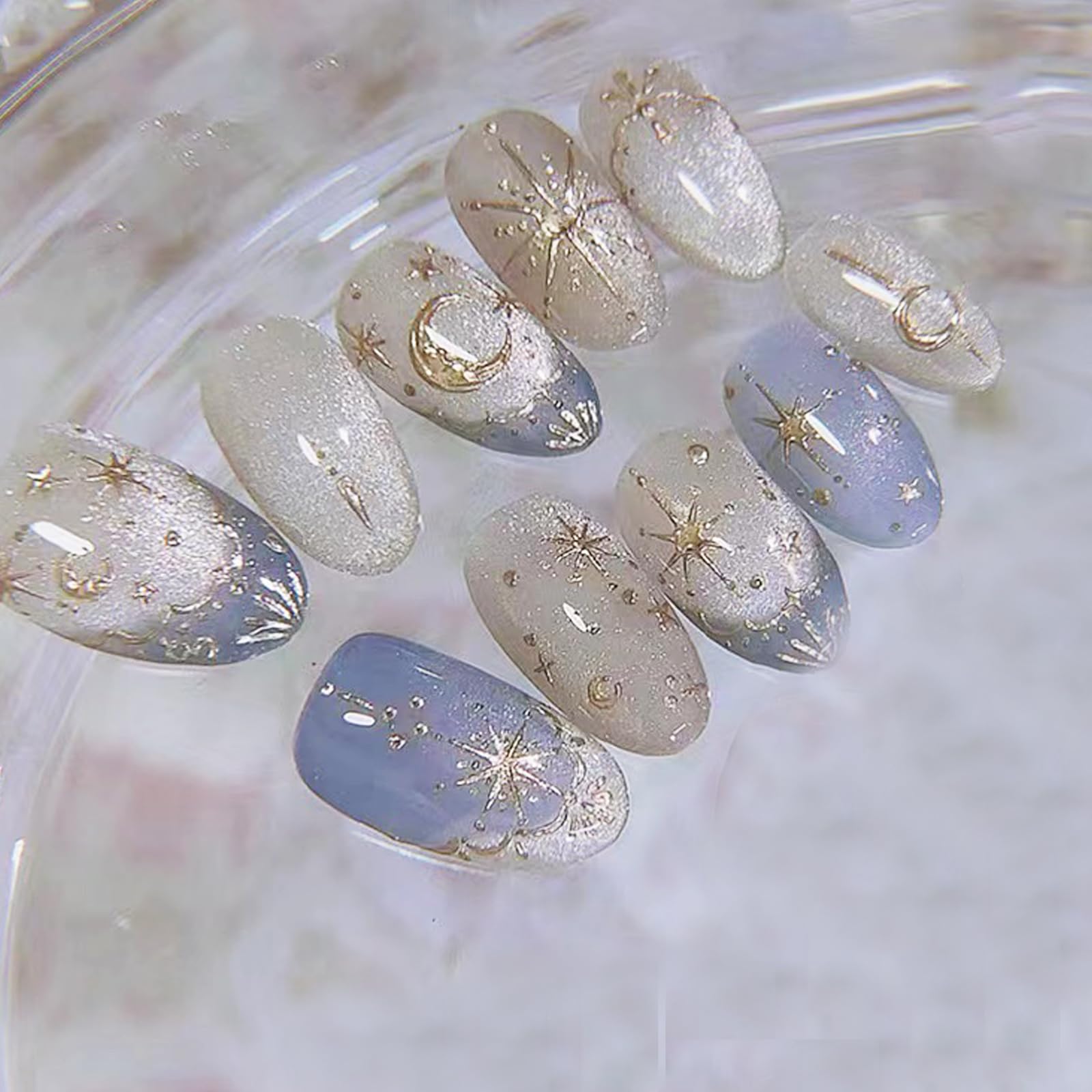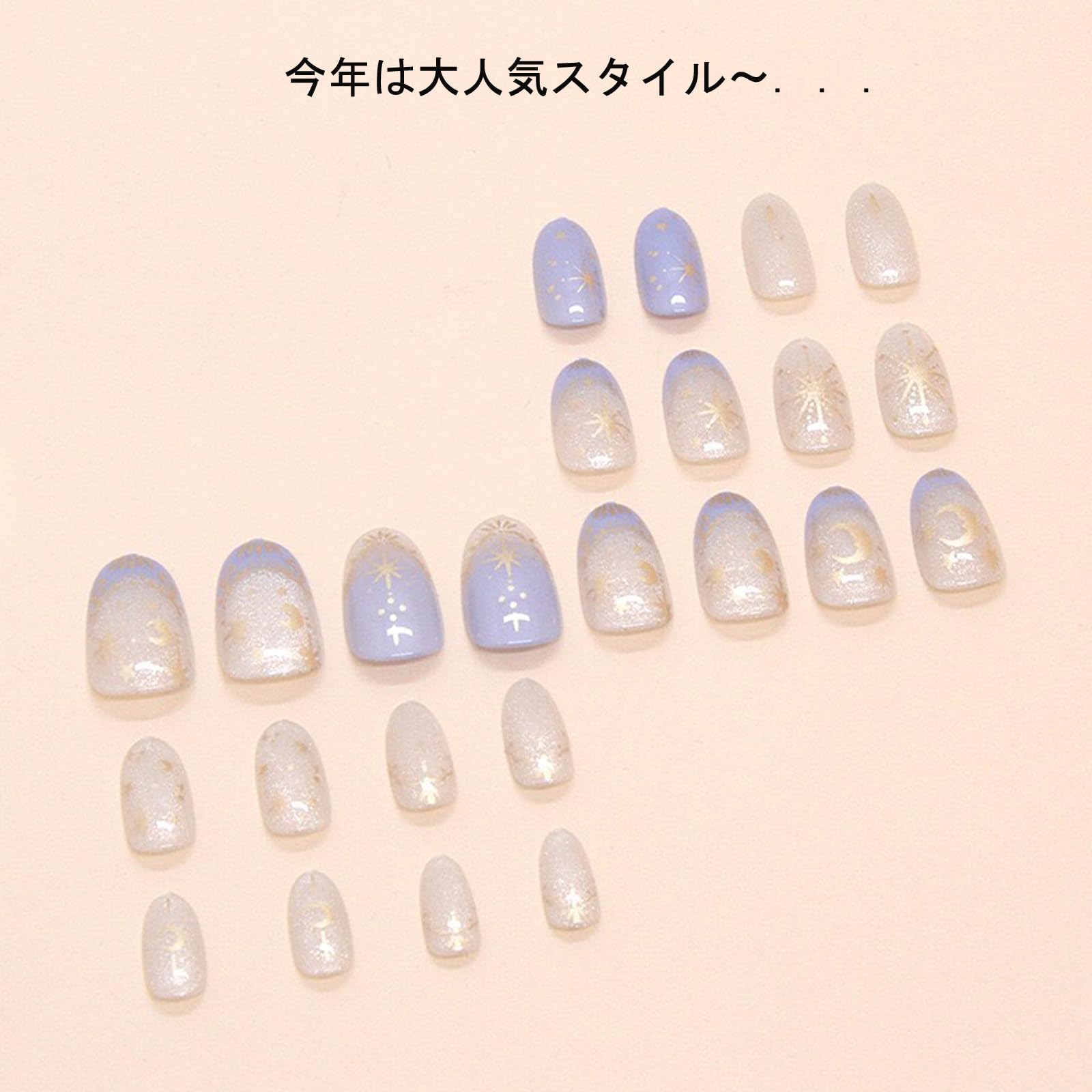 【特価処分】ネイルチップショート 人気ネイル 24枚入り ネイルチップ春 夏 和風 かわいい ネイルチップ秋冬 手作りネイルチップグラデーション ネイル 花嫁 ショート 光沢 つけ爪 成人式 結婚式 (キャツアイ・グラデーションブルー)