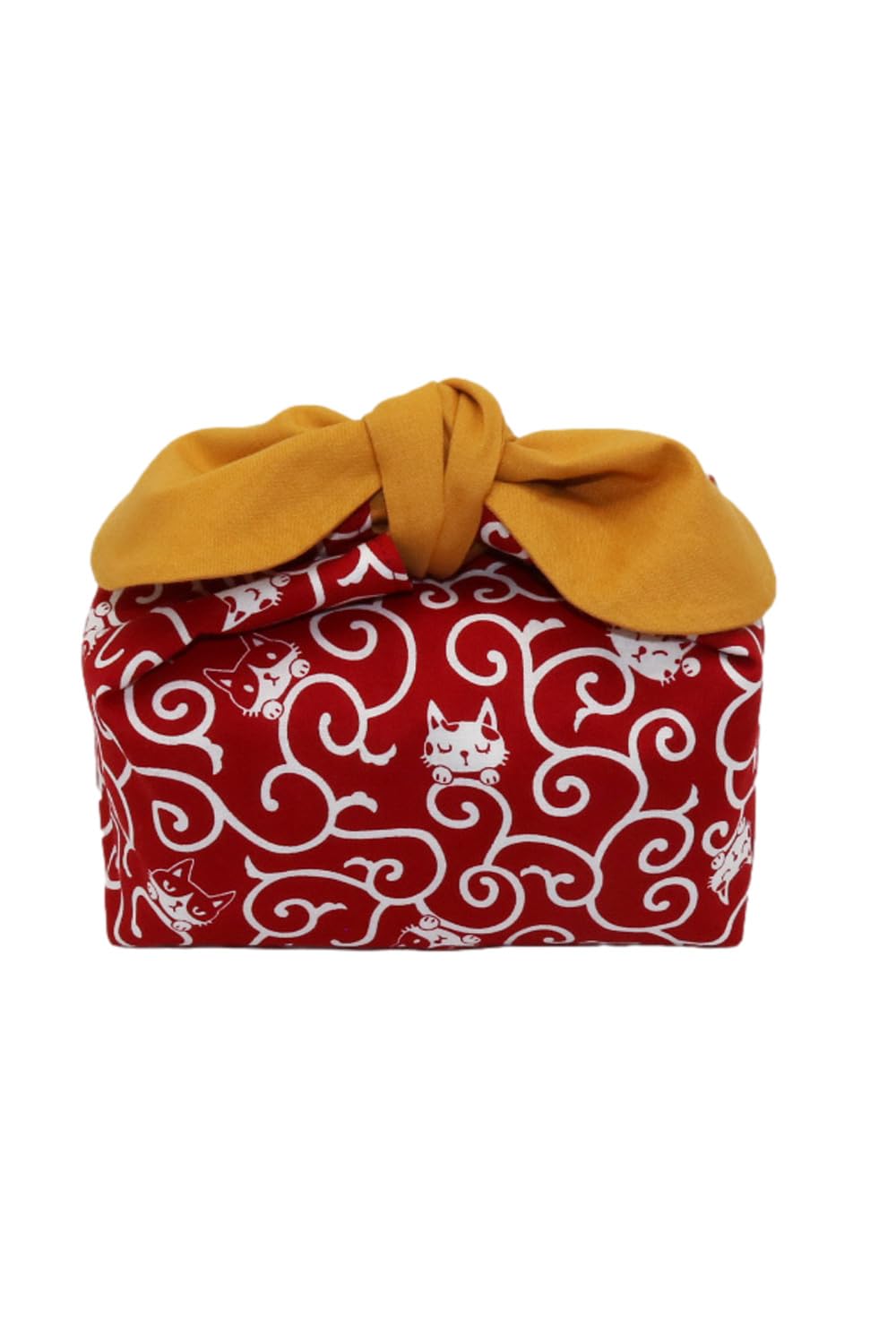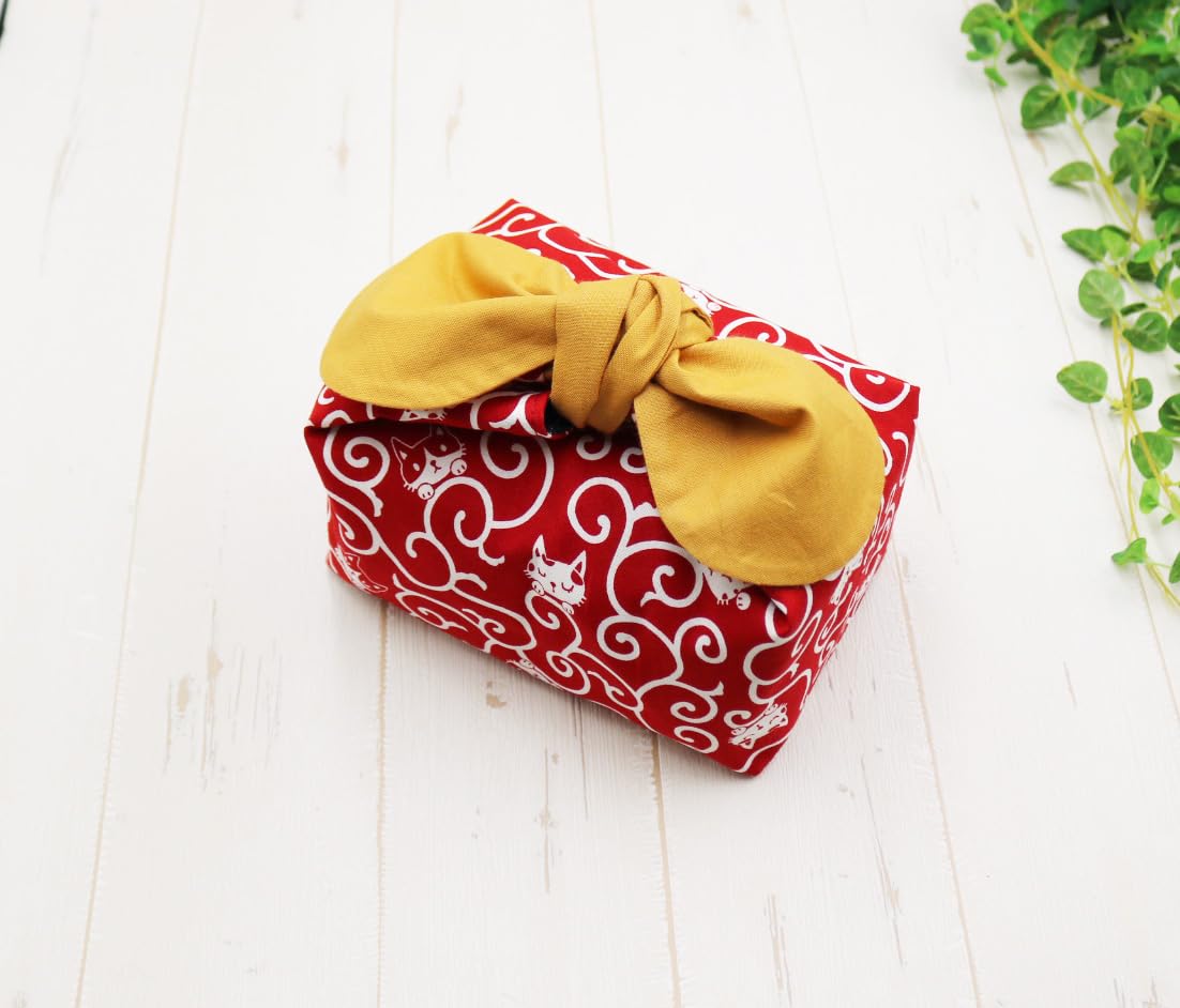 【人気】お弁当袋 保冷保温 ランチバッグ 紐なし 結ぶタイプ あづま袋 リボン 和柄 (ネコ唐草 赤)