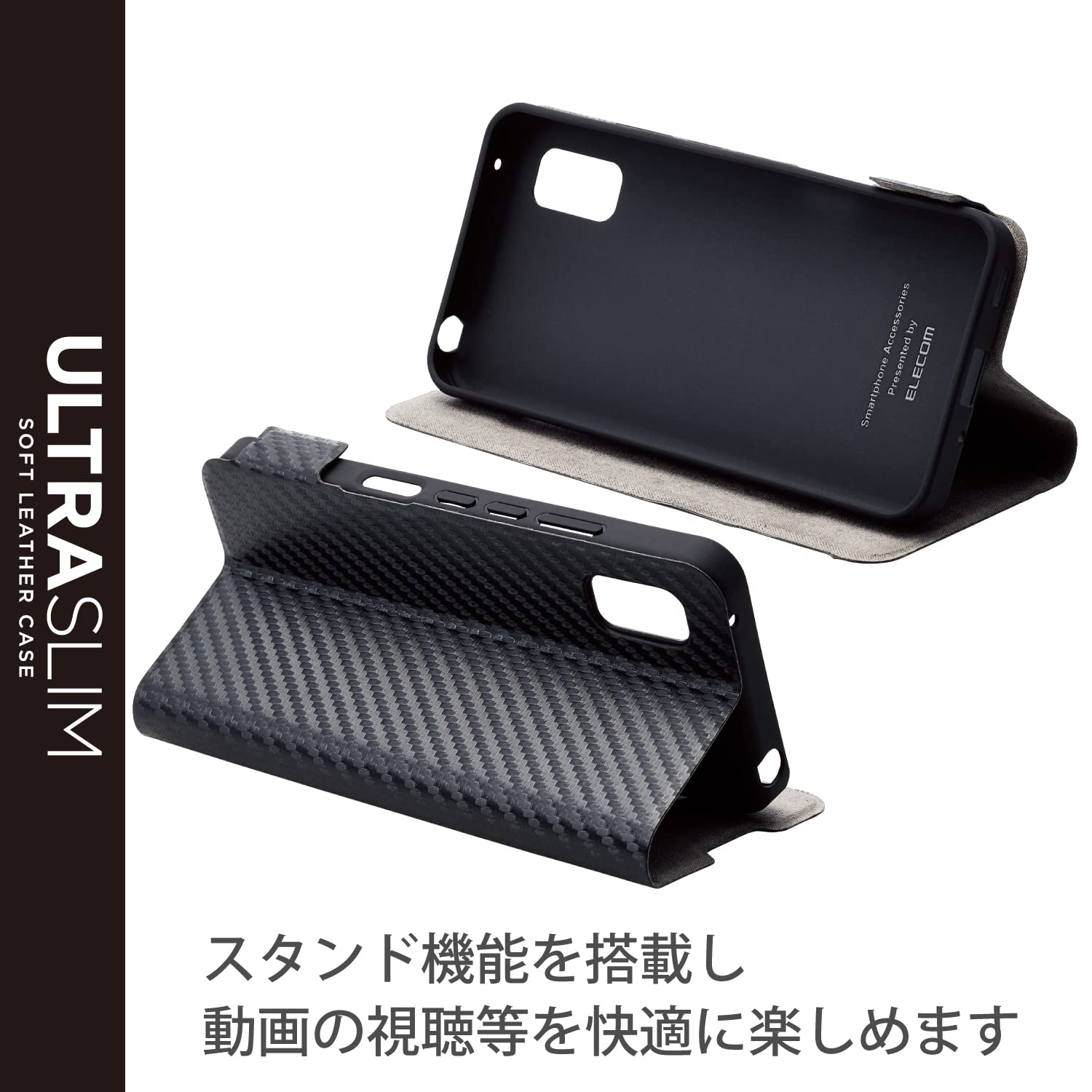 【在庫のみ】エレコム AQUOS wish (SHG06) レザーケース 手帳型 UltraSlim 薄型 磁石付き カーボン調(ブラック) PM-S212PLFUCB
