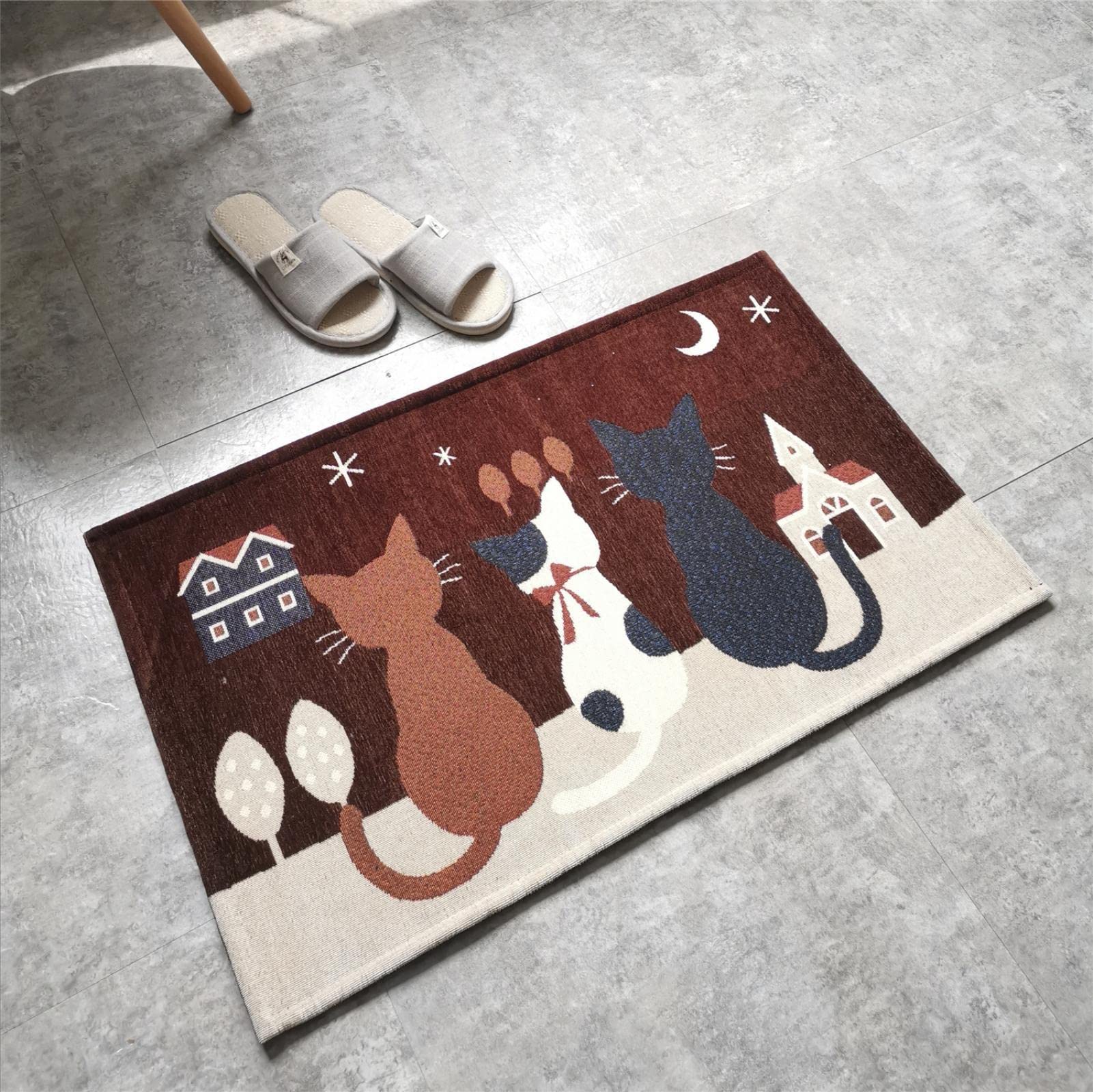 玄関マット ねこ柄 ラグマット 猫柄 室内 屋内 おしゃれ かわいい カーペットリビング対応 キッチンマット 洗面所マット 玄関まっと 洗える すべり止め 耐磨耗性 滑り止 50x80cm モカ
