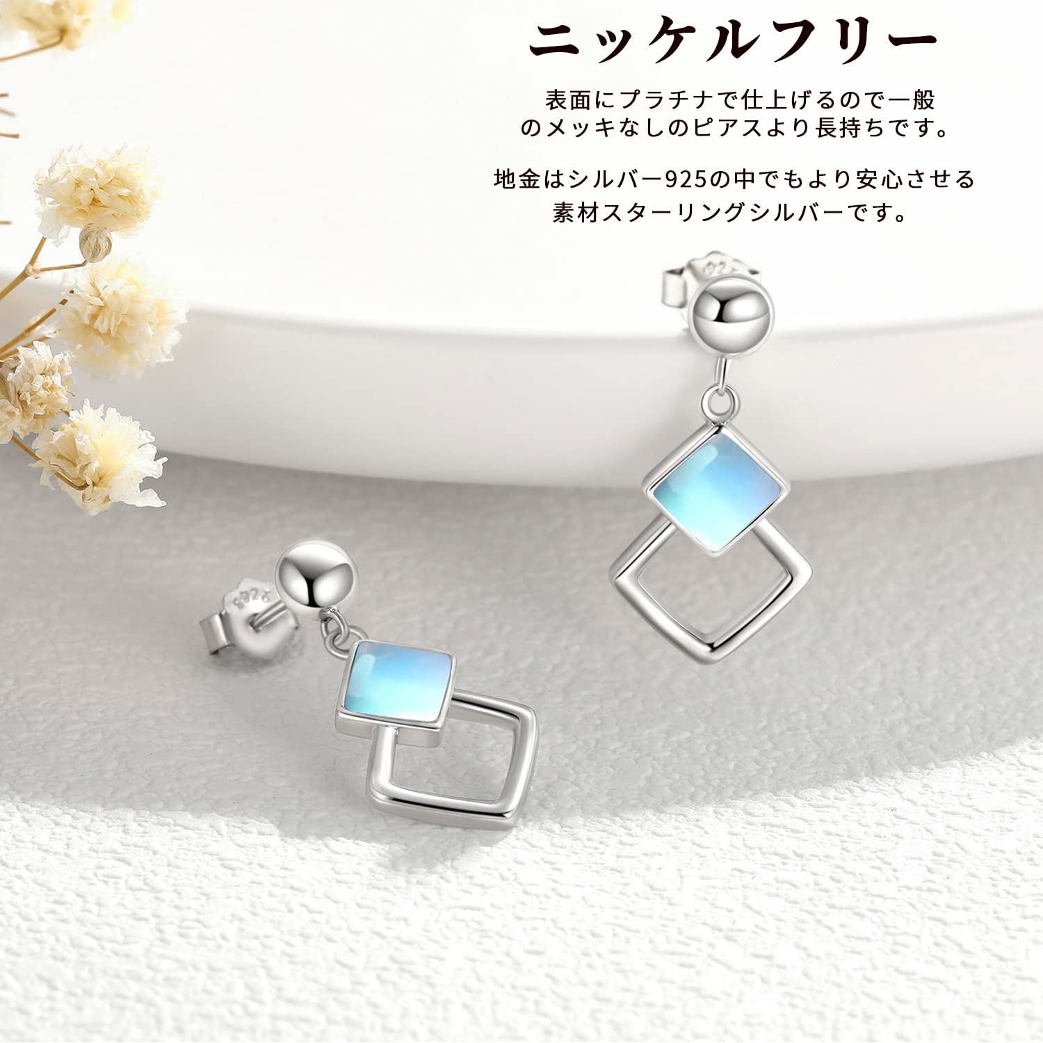 レディース ピアス シルバー925 ムーンストーン 金属アレルギー対応 揺れる スタッドピアス しずく 蝶 クジラ 星 蝶々結び ひしがた 月長石 プラチナ仕上げ プレゼント ジュエリー アクセサリー 女性ヘの贈り物 ギフト 成人の日 クリスマス ホワイトデー 母の日 誕生日 お祝い 記念日