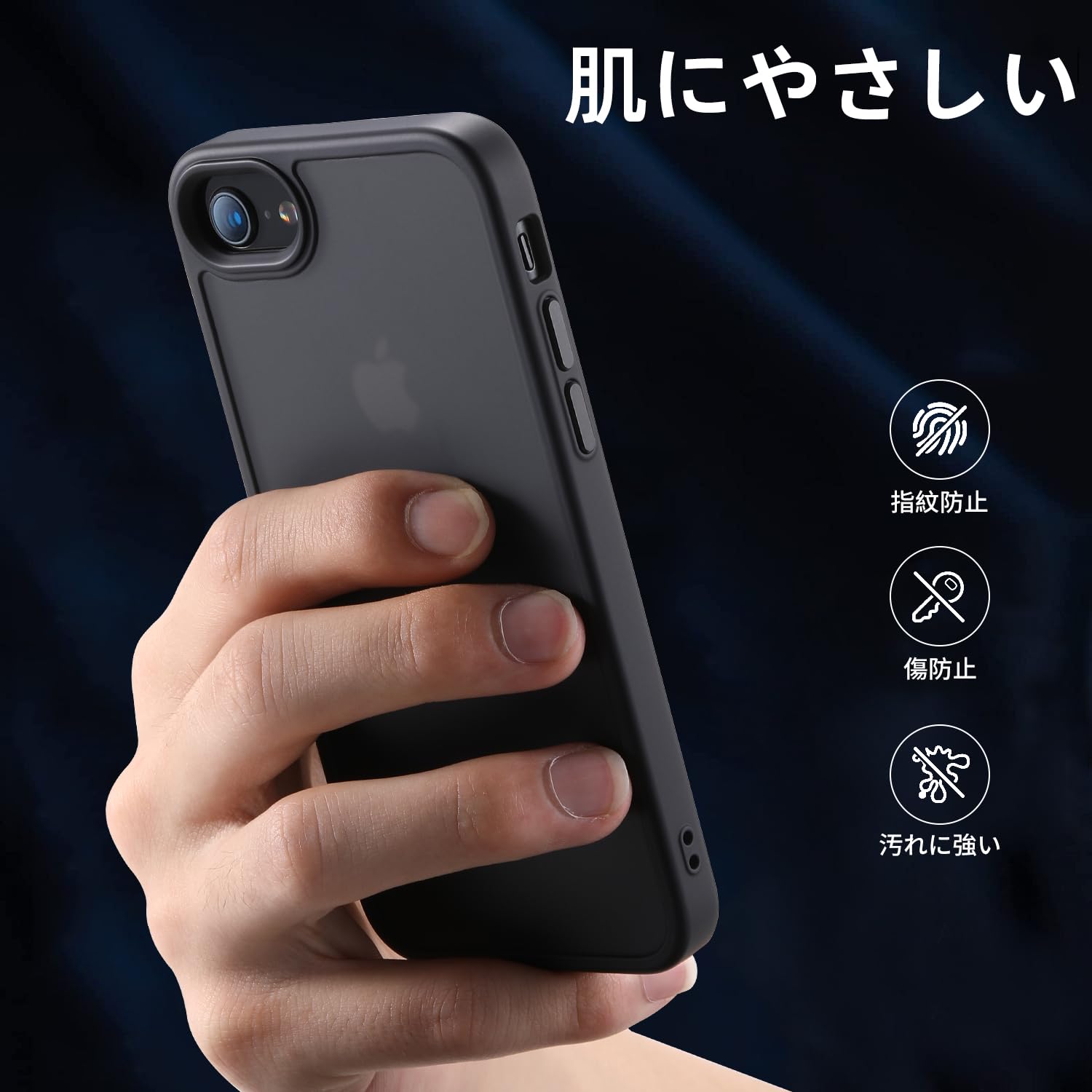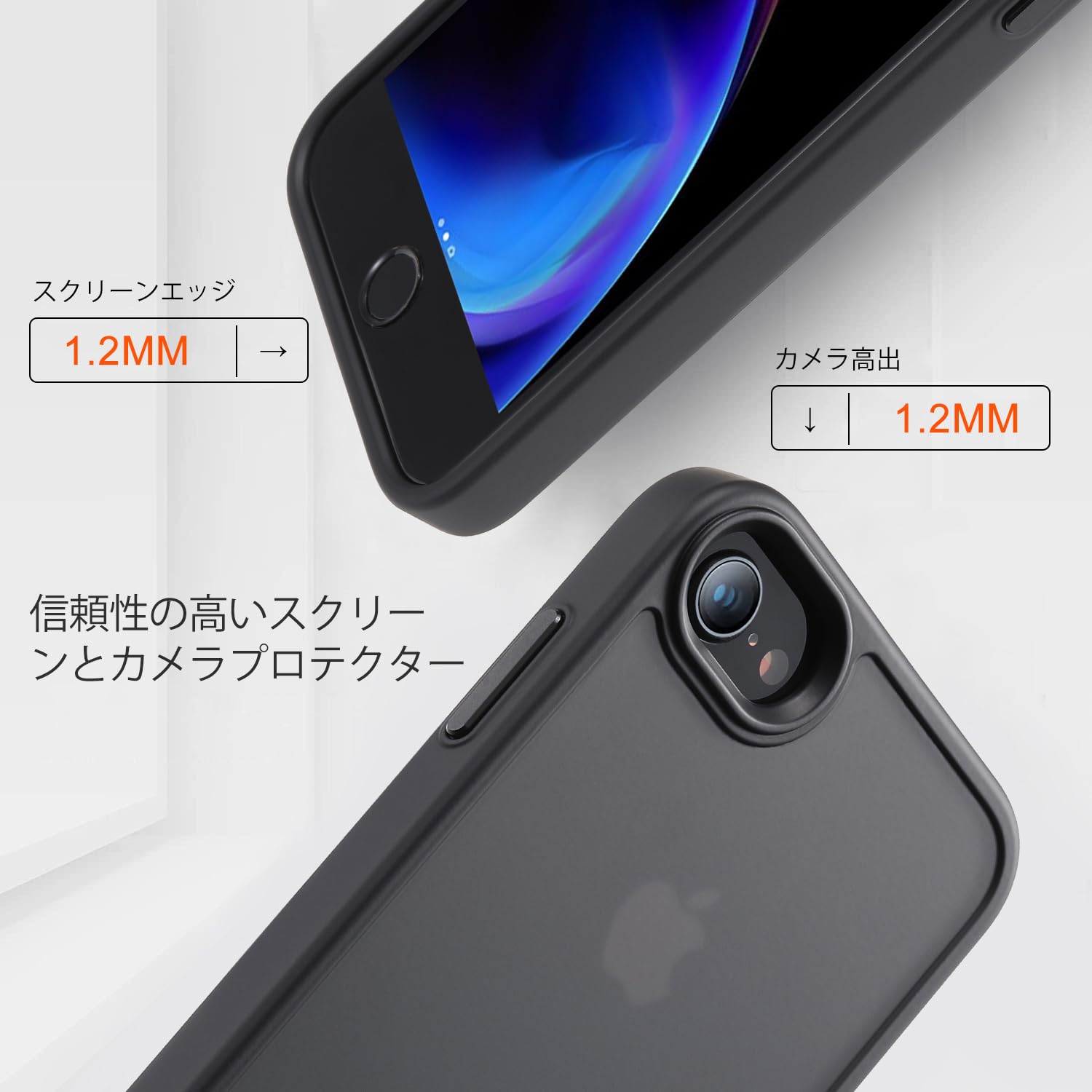 iPhone se 2 se3 8 7 用 ケース 第2世代 第3世代 耐衝撃 滑り止め 指紋防止 米軍MIL規格 マット仕上げ ストラップホール付き SGS認証 黄変防止 耐久性 カバー ワイヤレス充電対応 アイフォン いphone se3 用 4.7 インチ ケース マットブラック