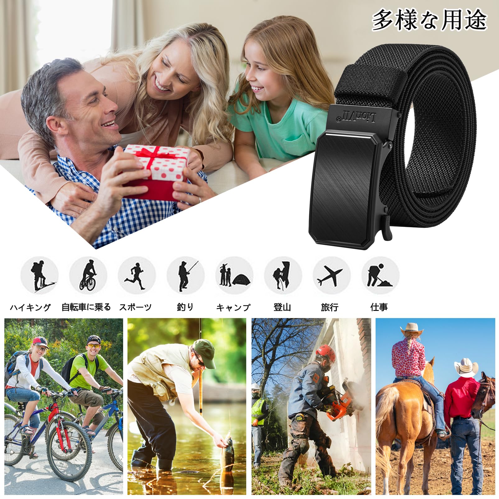 ![【在庫処分】[LionVII] 伸縮 ベルト メンズ - オートロック式 ベルト 作業 スポーツ 登山 ゴルフ - ナイロン ベルト 作業着 伸びる 穴なし 無段階調節 合金バックル 幅34mm長125cm【ウエスト75cm-115cmに最適】](https://baseec-img-mng.akamaized.net/images/item/origin/10814fc17e9ad29d3765a72f94151312.jpg?imformat=generic)