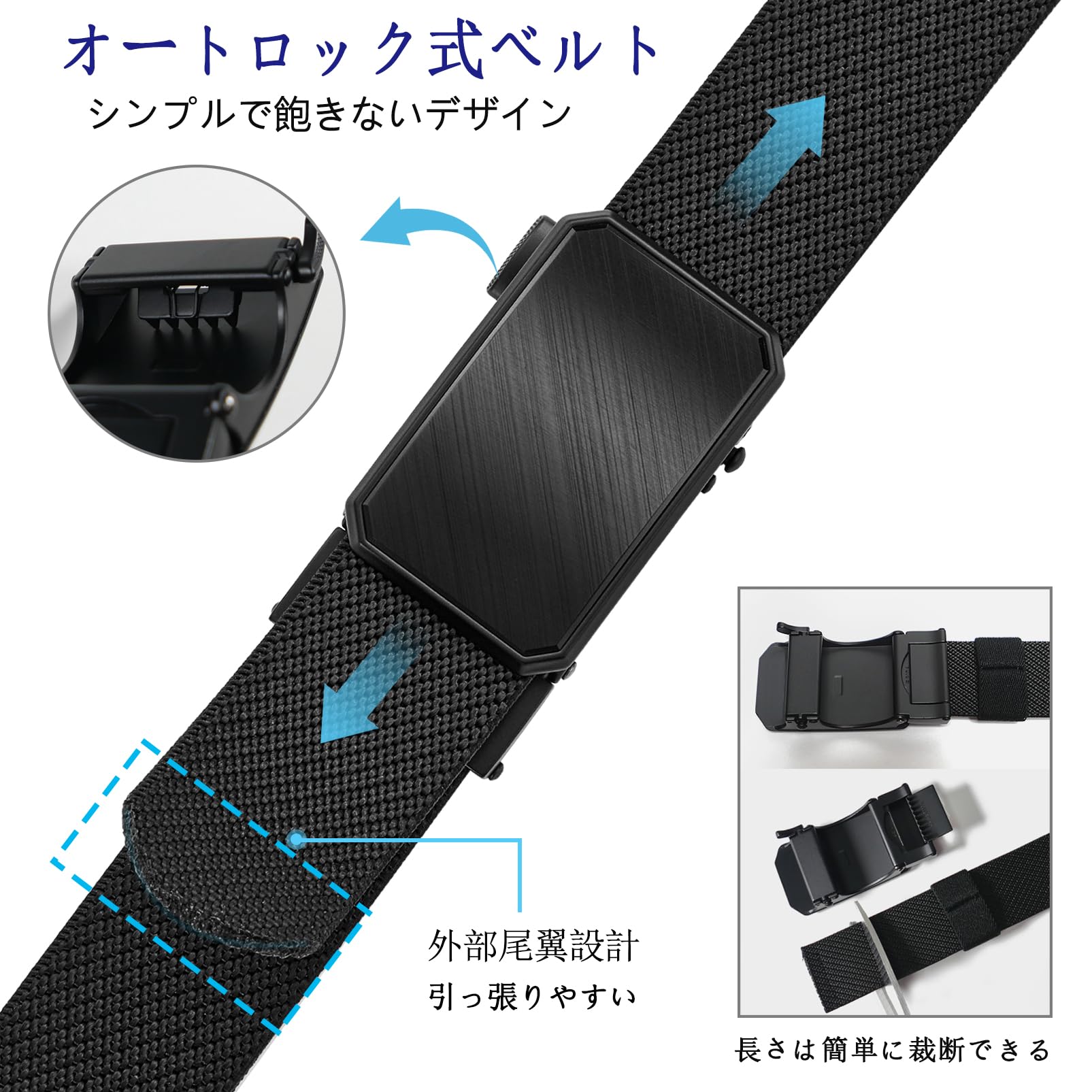 【優れた素材】ベルト部分は布より耐久性が高い高品質ナイロンを使用。またベルトバックル部分は強化合金素材で仕上げました (◆オートロック式無段階調整)