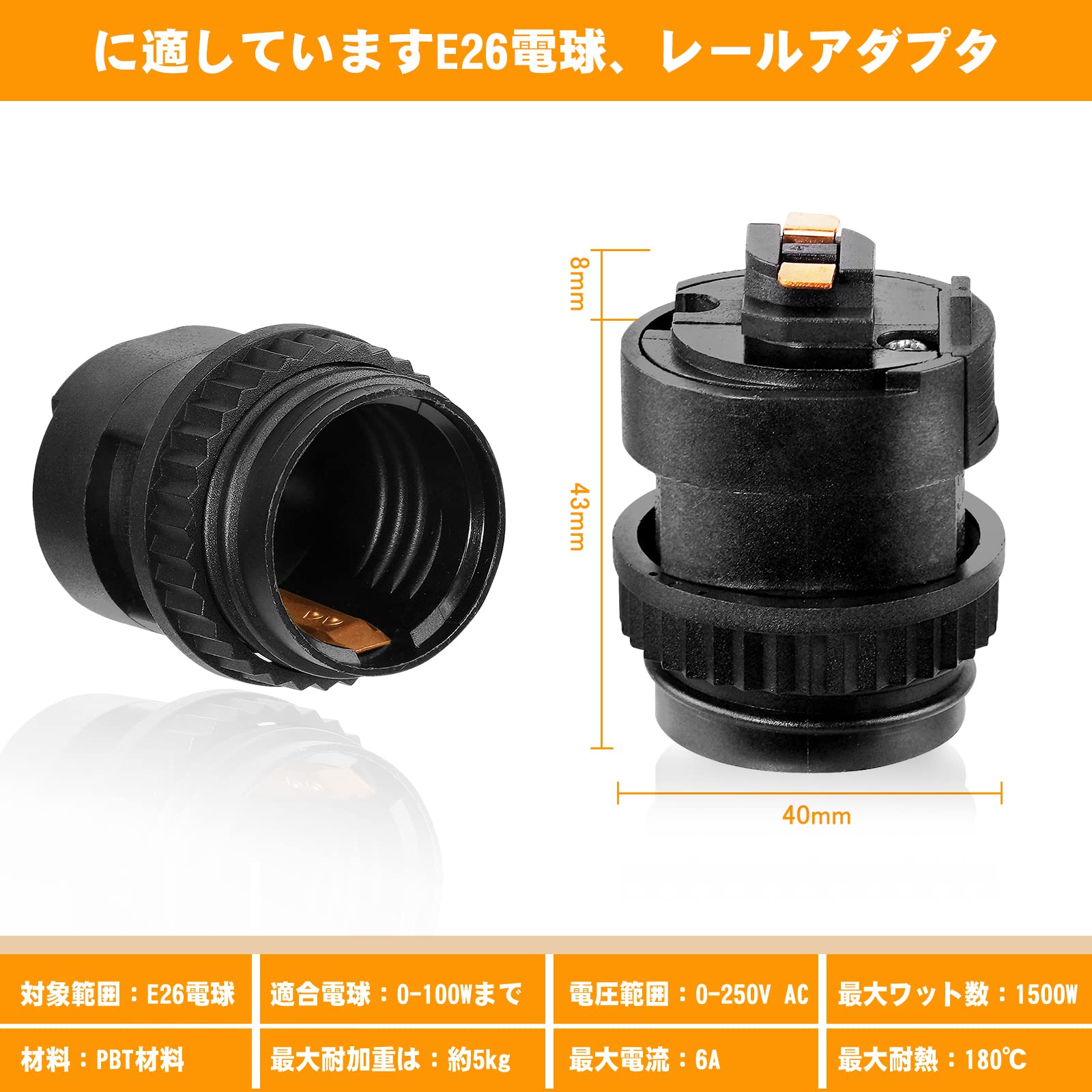 1、E26口金対応ダクトレール用ソケット,E26口金の電球であれば、お好みのLED電球、白熱電球をご使用いただけます。