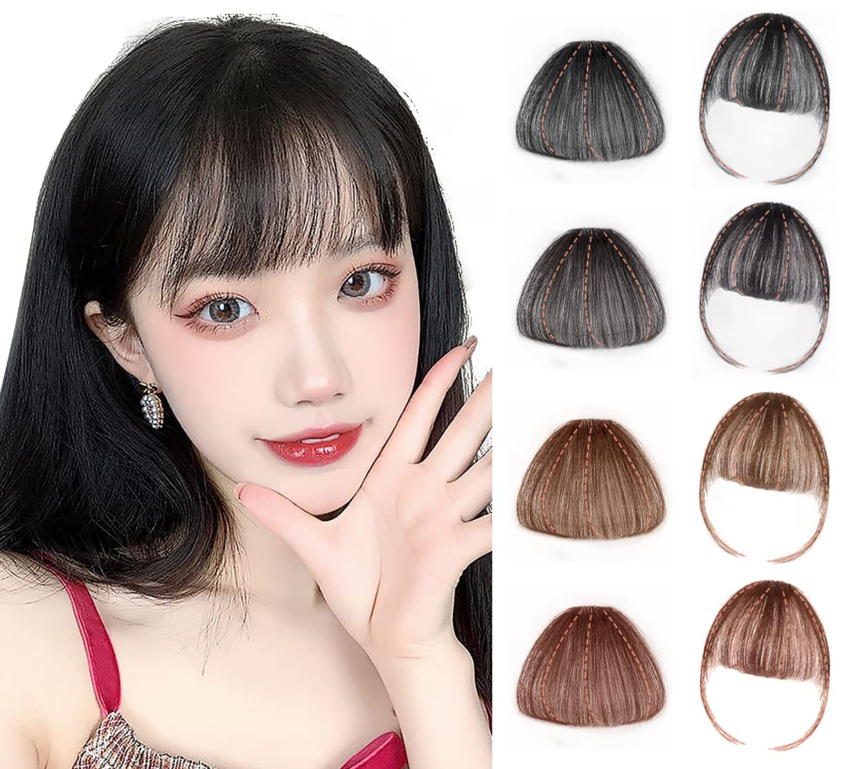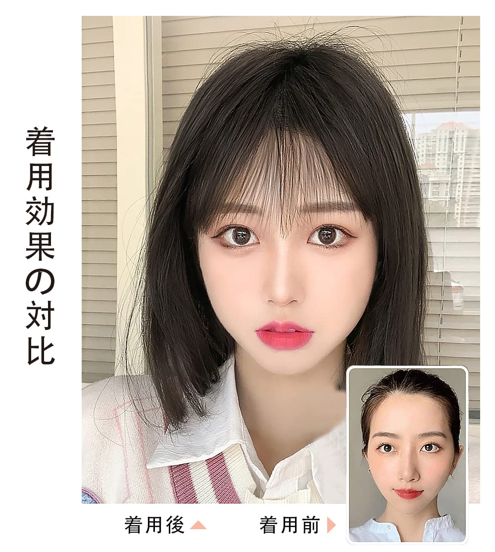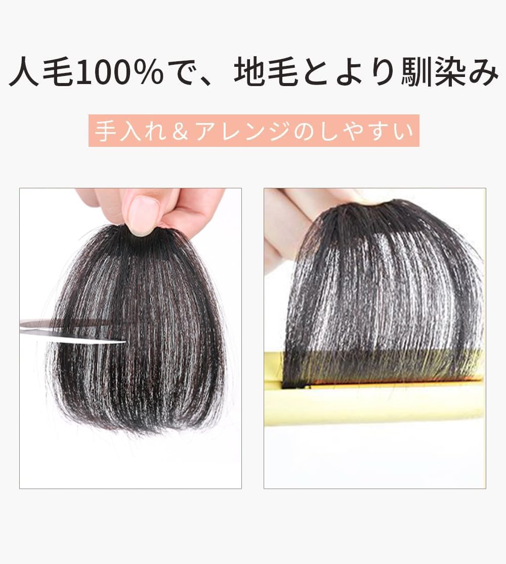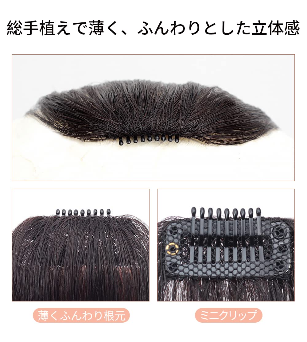 HIYE 前髪ウィッグ 超自然 100%人毛 総手植え ぱっつん ふんわり 空気感 超薄型 前髪 つけ毛 耐熱 女性用 小顔効果 ワンタッチ 日常 使いやすい エクステ ポイントウィッグ (サイドなし, ブラックブラウン)