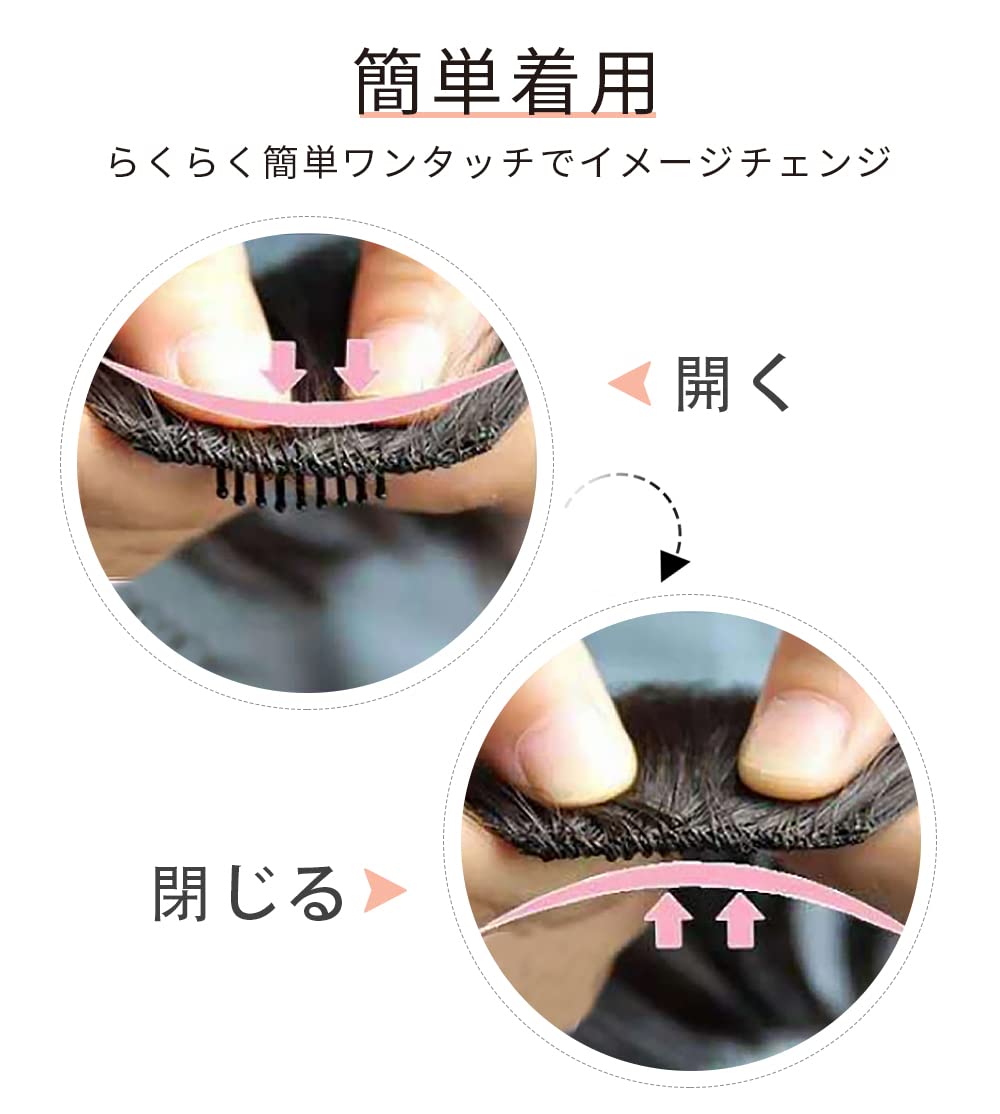 クリップ:クリップ式デザインで、非常に使いやすく、簡単に取り付けて髪型を変えることができます。クリップで地毛にしっかりと固定するだけで、ウィッグ初心者でも手軽にイメージチェンジができるのが魅力です。軽いので、1日中付けていても疲れにくいという特徴があります。