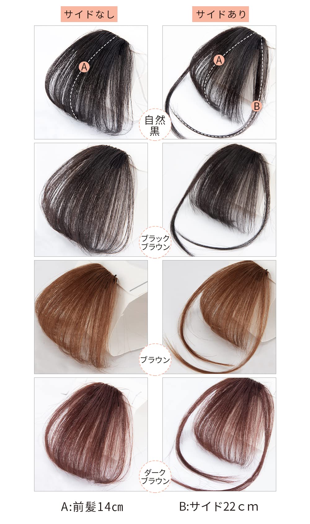 商品仕様:素材構成:人毛100% 長さ:約12cm 色:自然黒、ブラックブラウン、ダークブラウン、ブラウン。