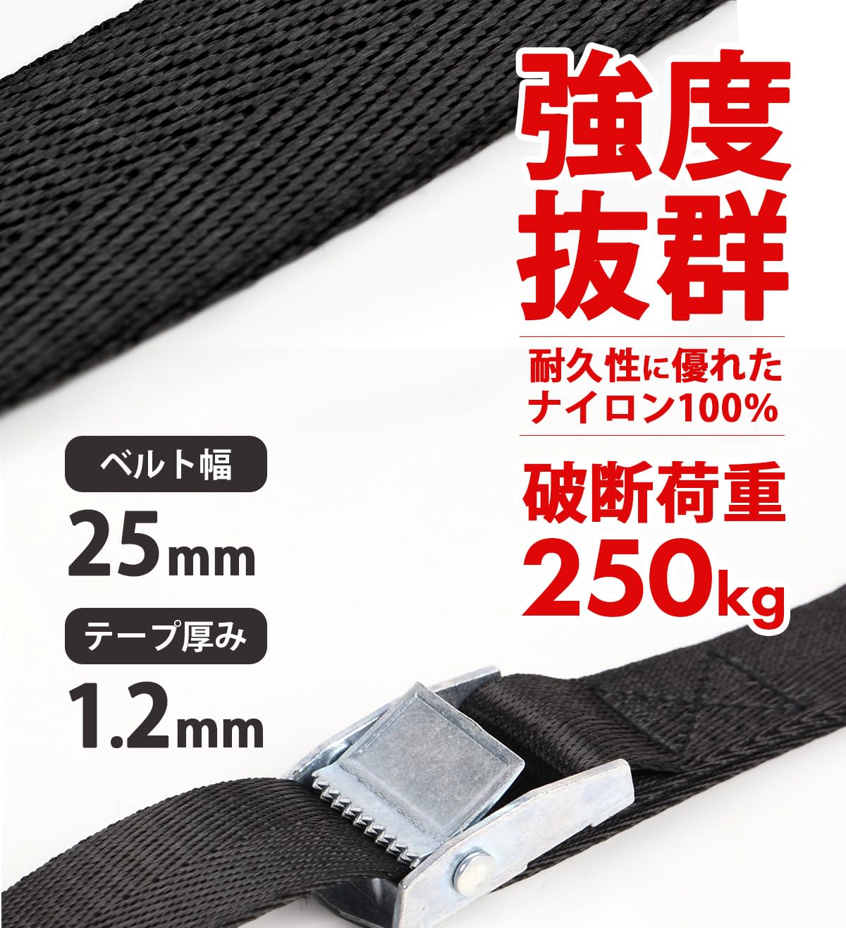【努力特価】荷締めベルト 固定ベルト 結束バンド 最大使用荷重100kg 荷締バンド 梱包 固定バンド 地震対策グッズ 2m 3m 4m 2本セット (2m ブラック)