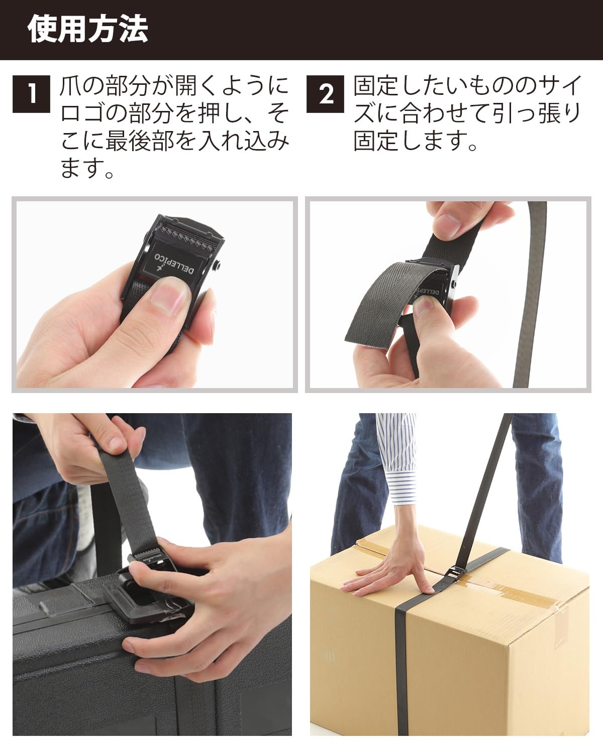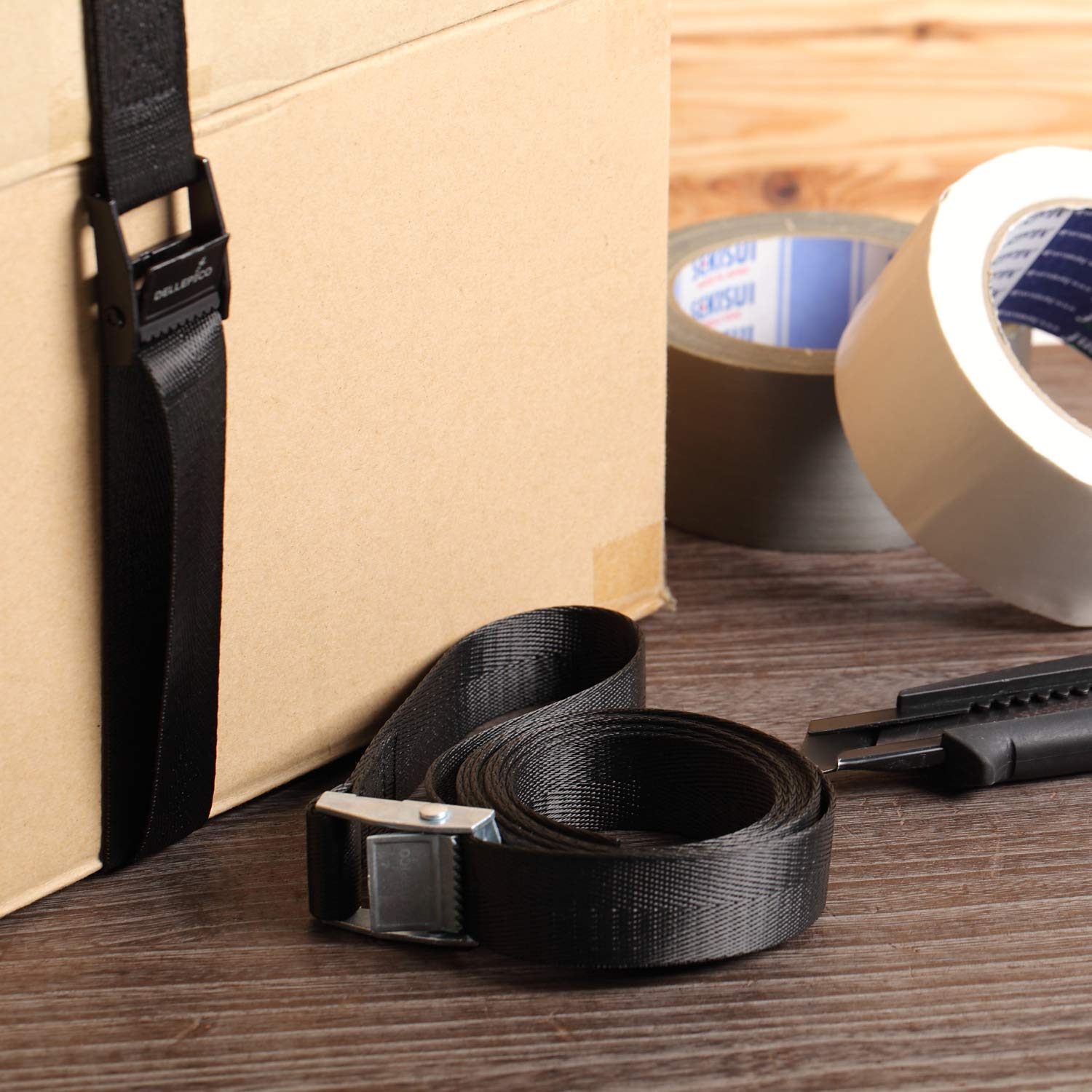 荷締めベルト 固定ベルト 結束バンド 最大使用荷重100kg 荷締バンド 梱包 固定バンド 地震対策グッズ 2m 3m 4m 2本セット (2m, ブラック)