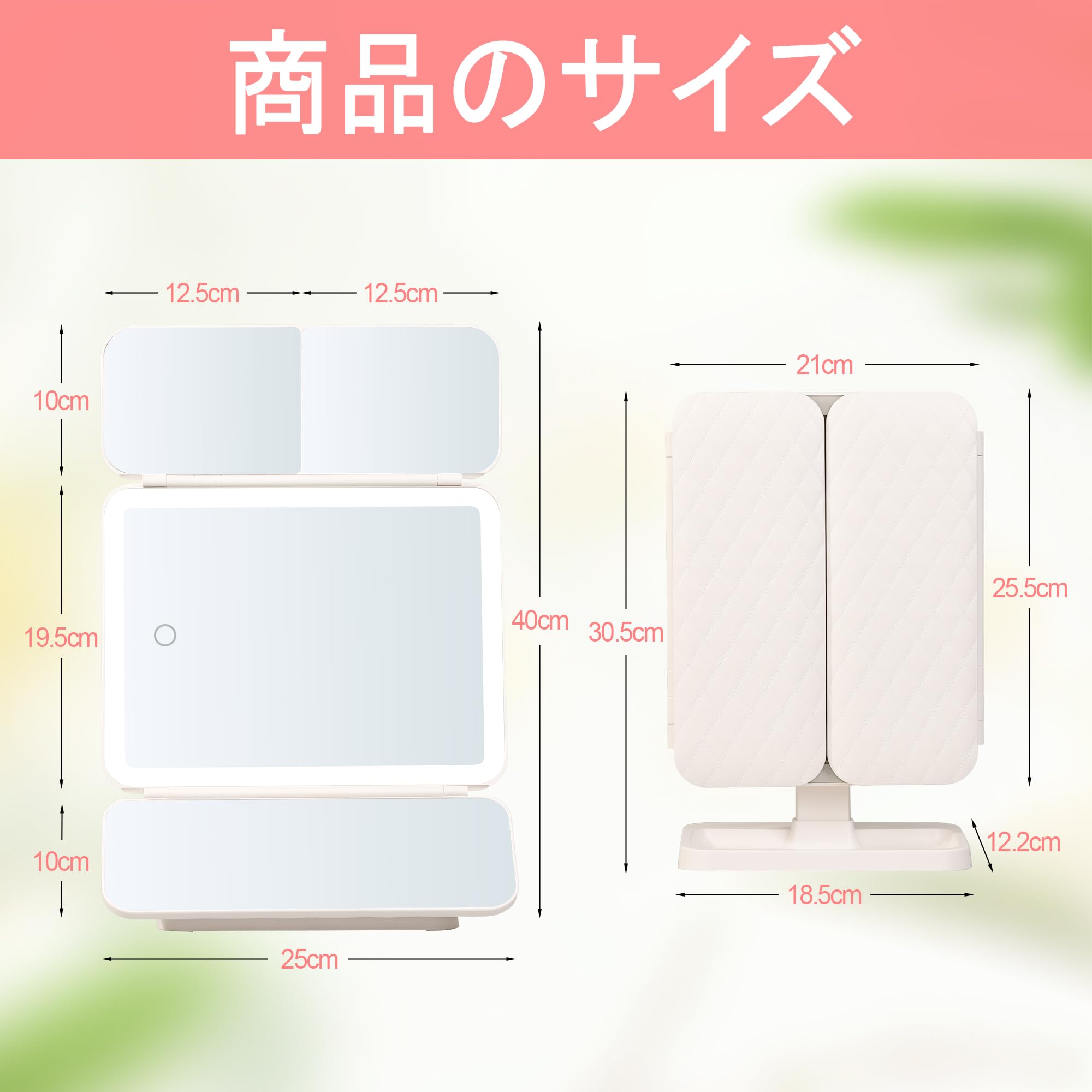 【2倍&3倍拡大鏡】拡大鏡で細部を確認しやすく、メイクの微調整が簡単に。2倍拡大鏡は全体のメイク確認に、3倍拡大鏡は眉やアイラインなど細部の修正に適しています。