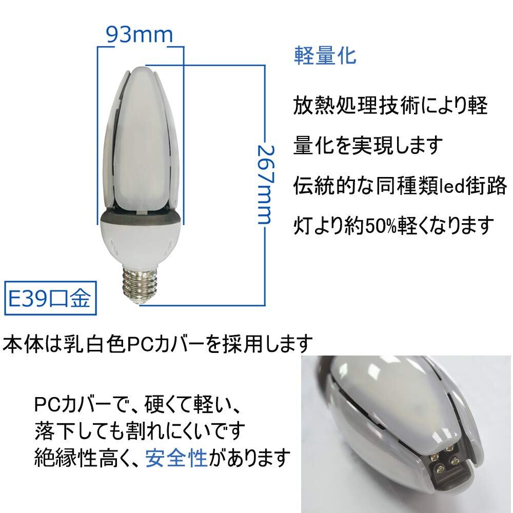 【製品仕様】450W水銀灯相当 LEDコーンライト/60w/全光束:9600lm/サイズ:267x93x93mm/990g/E39口金