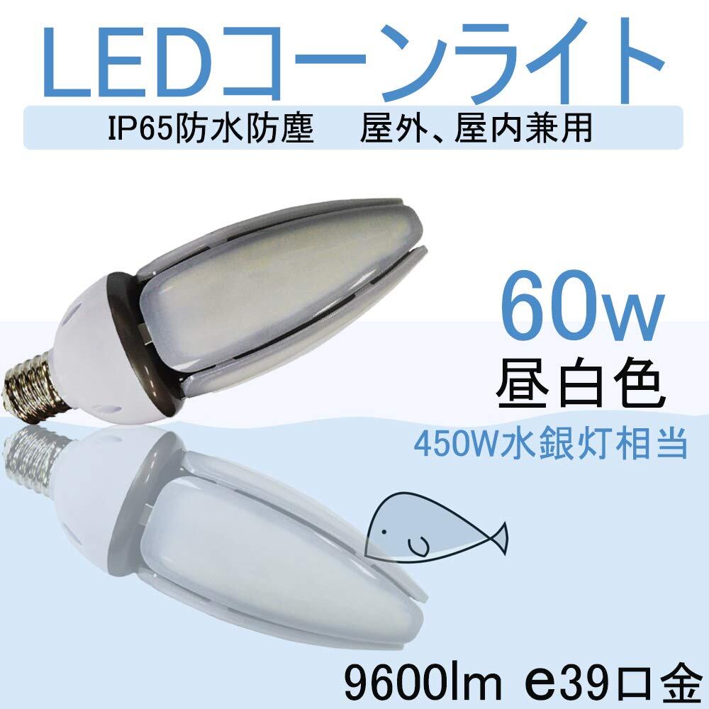 led コーンライト 60w e39 コーン型水銀灯 水銀灯代替互換led 電球 屋外 IP65防水防塵 船舶 作業灯 街路灯用 工場 倉庫 天井 看板照明 9600lm高輝度(昼白色5000k)