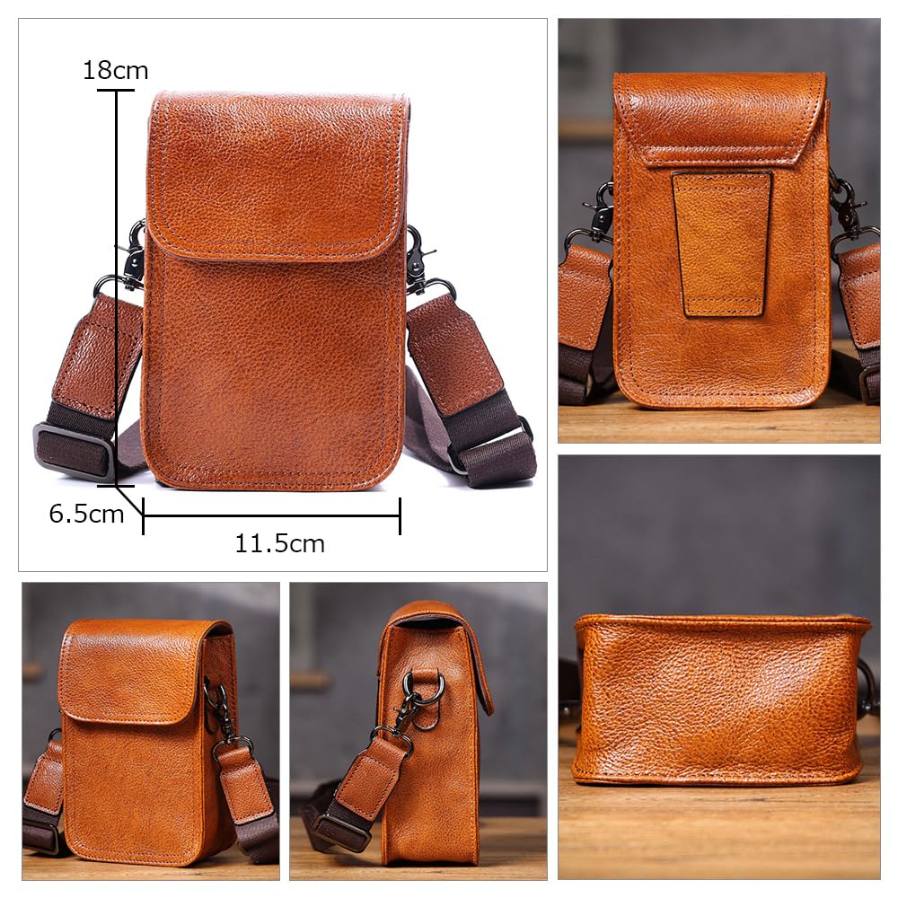 【特価処分】Whatnaアンティーク風合い鞣し 天 然 牛 革ミニショルダーバッグ メンズ ミニウエストバッグ ウエストポーチバイク用 本革 男女兼用 ミニ斜め掛け ボディ胸バッグ ワンショルダー 軽量 ブラウン 黒0608 (黒)