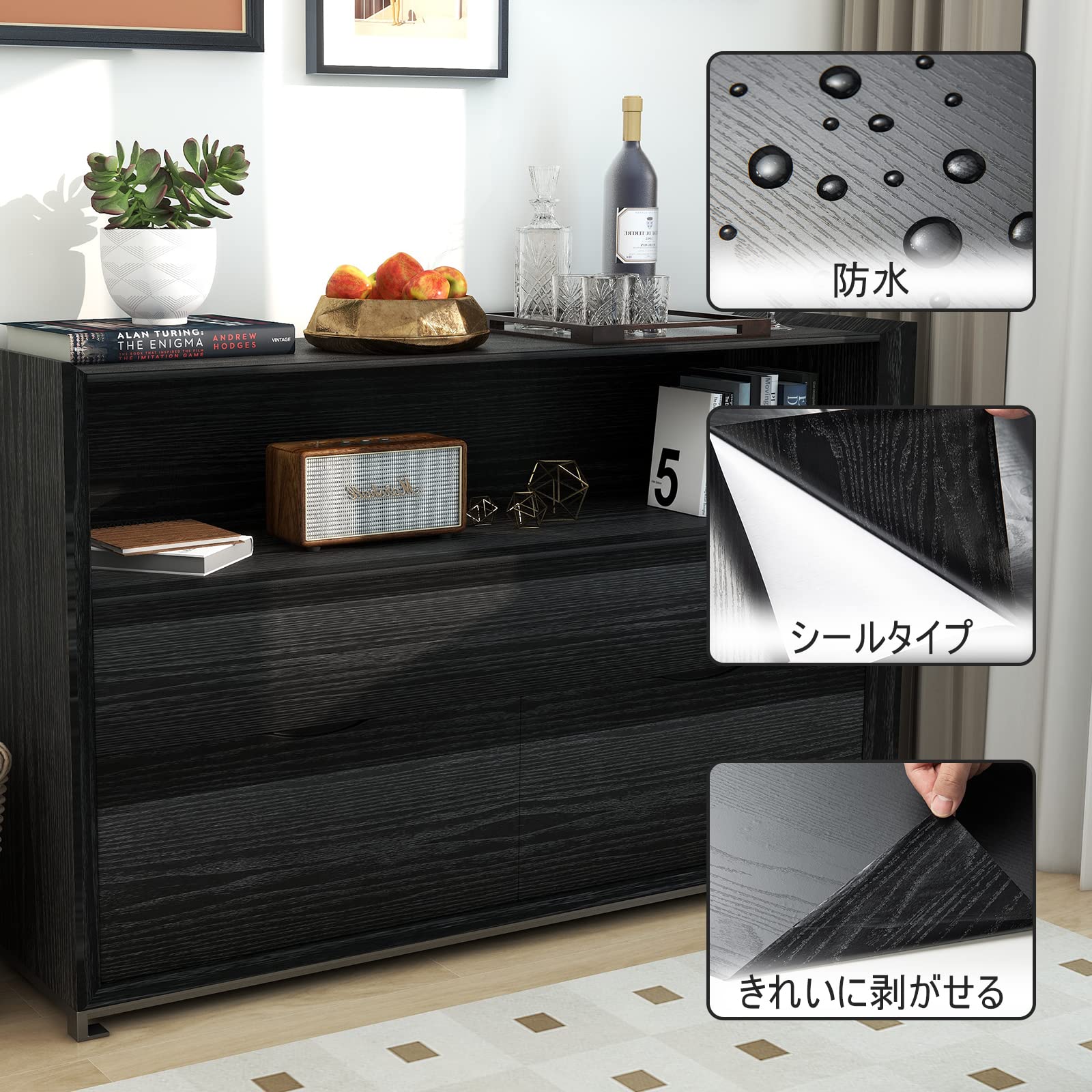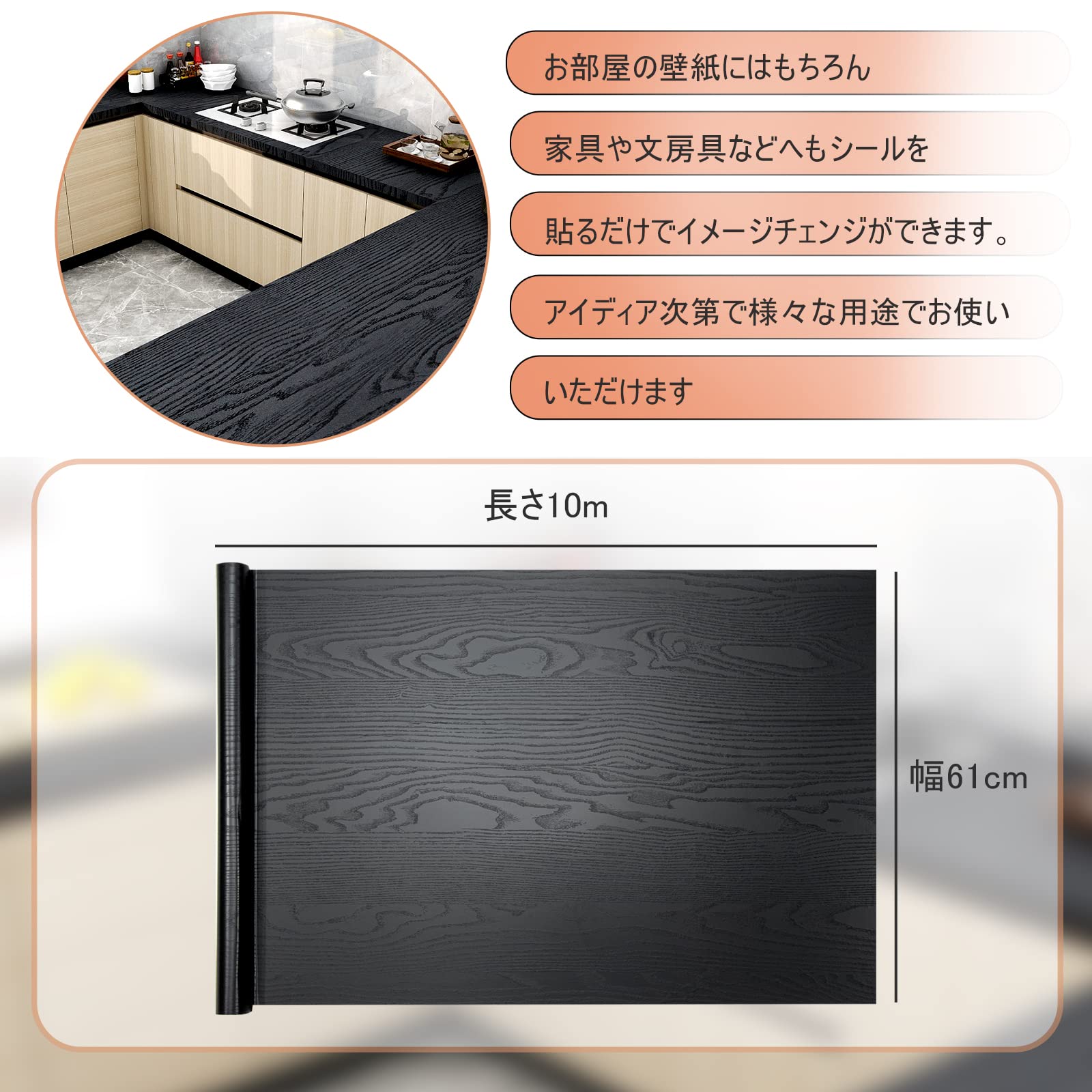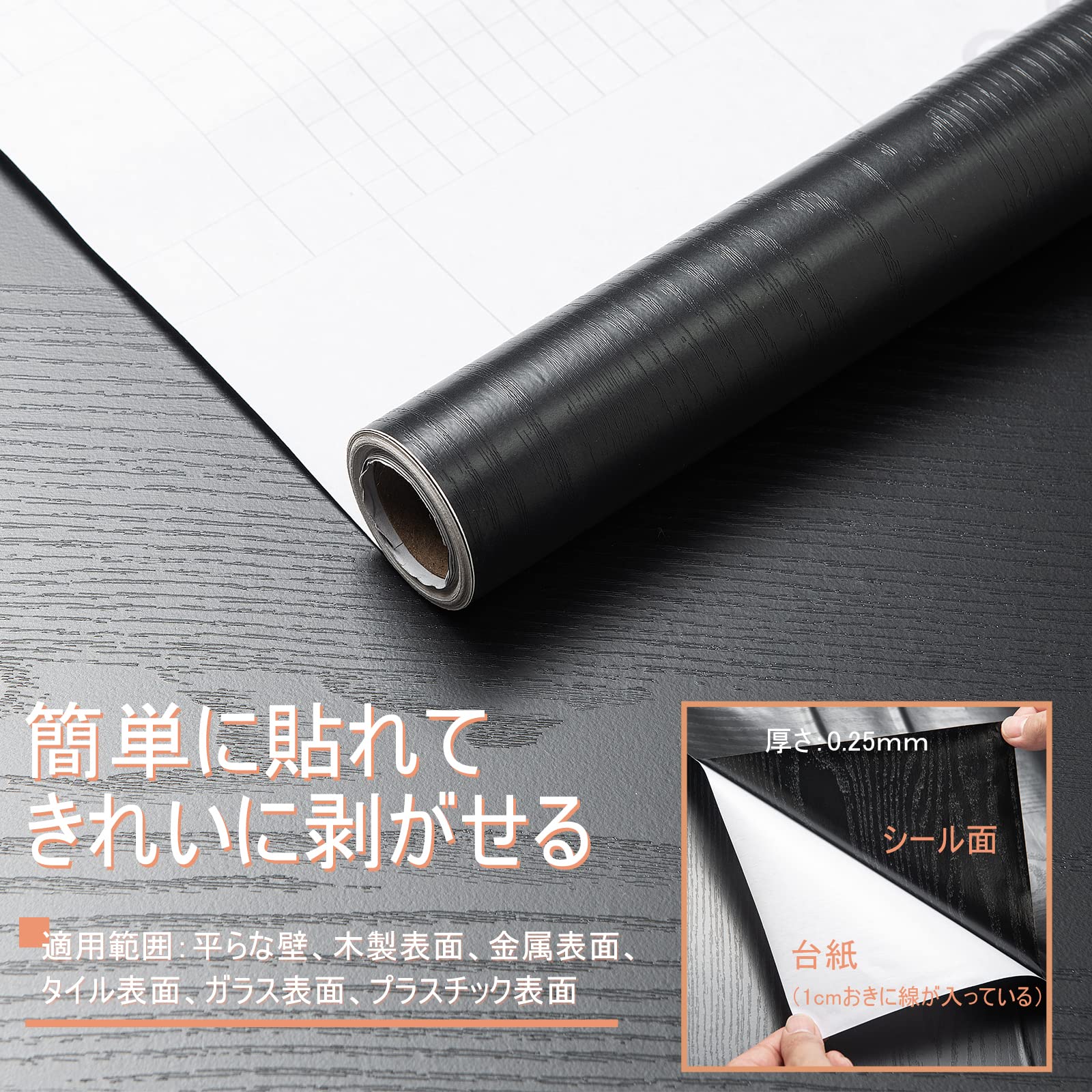 【数量限り】壁紙 黒 木目 厚手 はがせる 壁紙シール 60cmX10m リメイクシート 黒 木目調 カッティングシート 剥がせる壁紙 つや消し エンボス木目調 防水 簡単 diy ドア テーブル 扉 リフォーム 賃貸OK