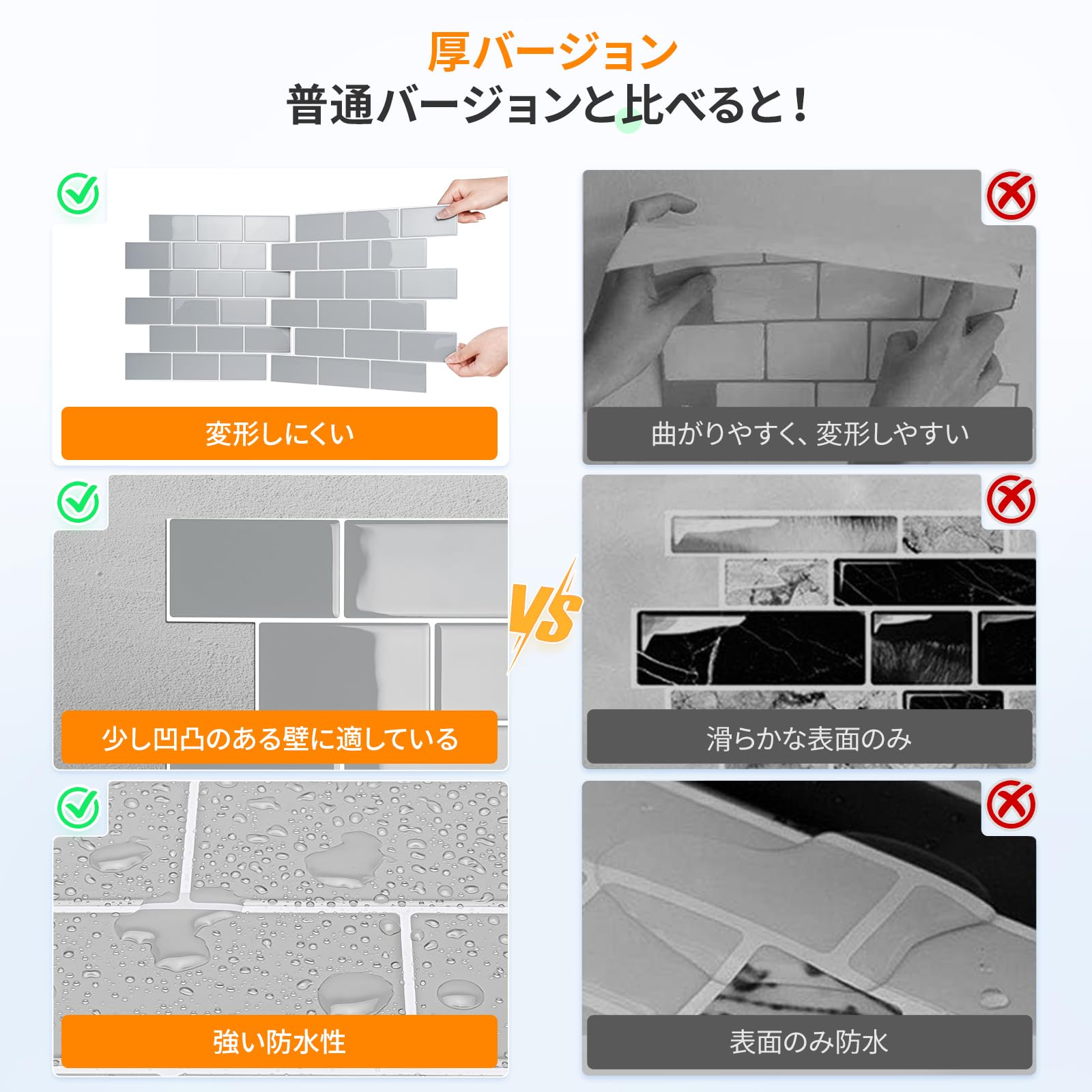 【製品サイズ】30.5cm×30.5cm×10枚入り。リメイクシートに適度に厚みがあり、少し凸凹な壁に貼っでも紙質シールよりもっとうまくて見栄えが良いです。