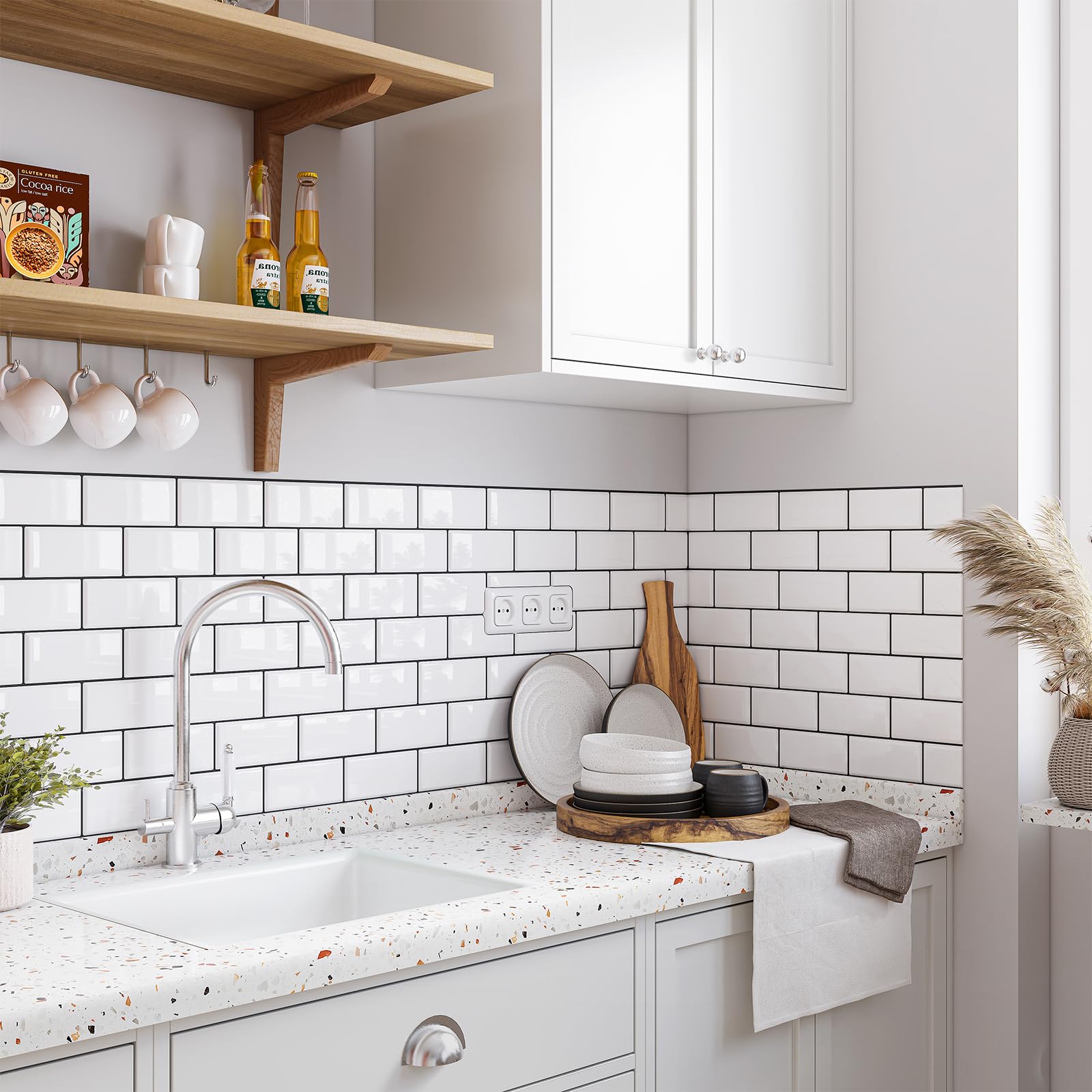 【リアルタイルのような質感】APSOONSELLタイルシールの自然な光沢と立体的なデザインは、本物のタイルの質感を完璧に再現し、高級感と清潔感が溢れています。