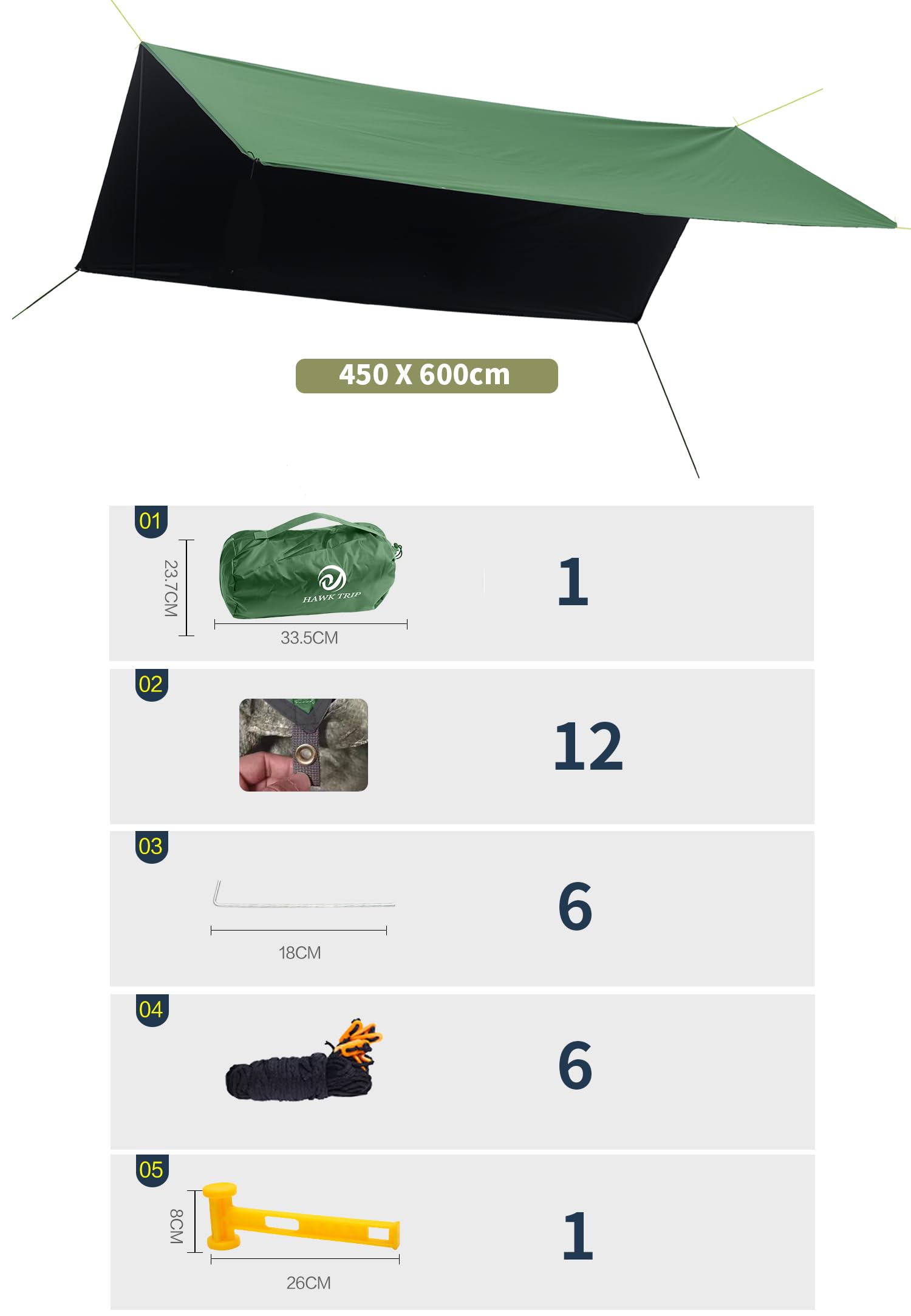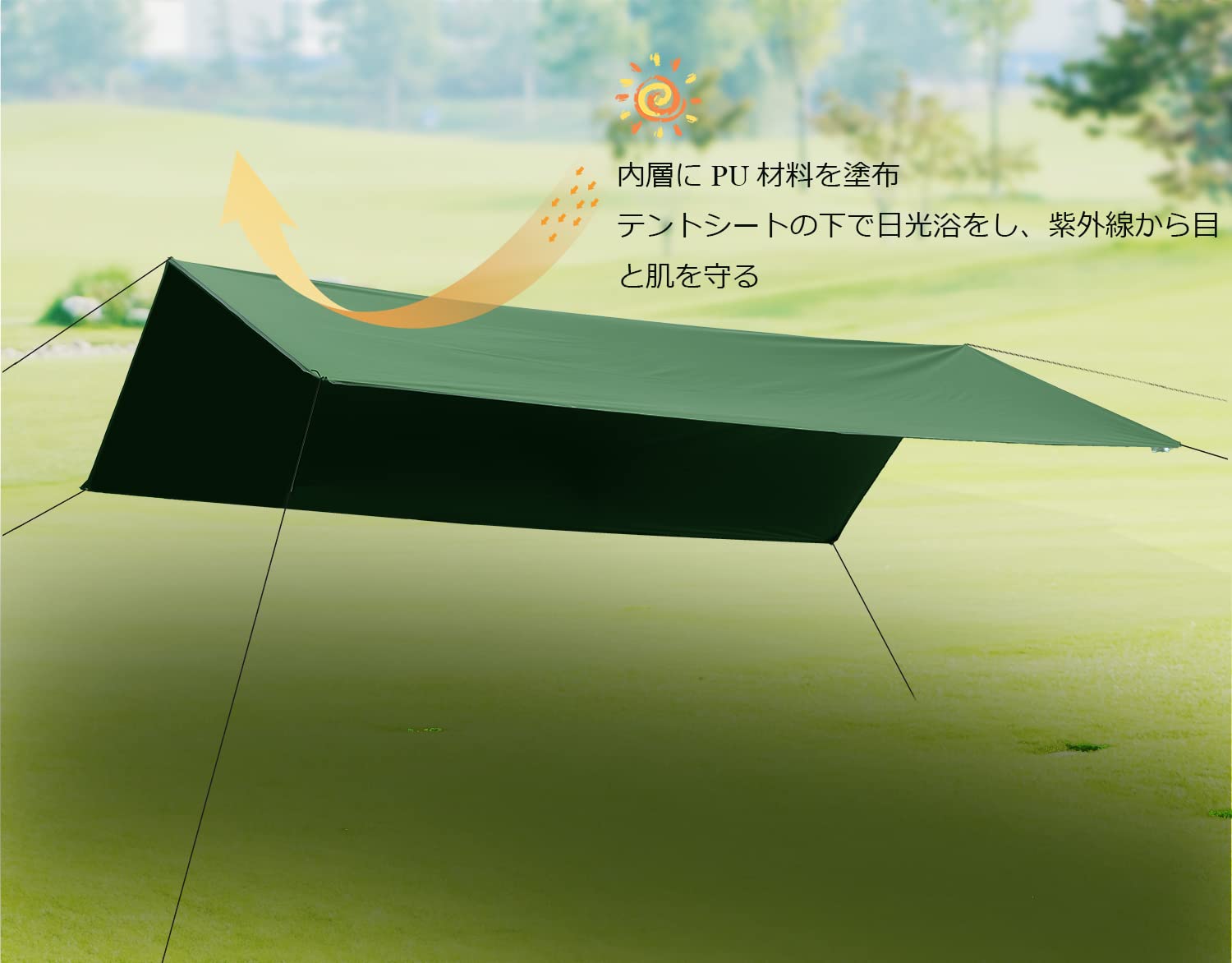 ポータブル多機能タープ キャンプ天幕テント防水棚防水棚軽量 遮熱 遮光 軽量 キャンプ用品リュックサック、トレッキング、ビーチ用 (450*600cm - グリーン)