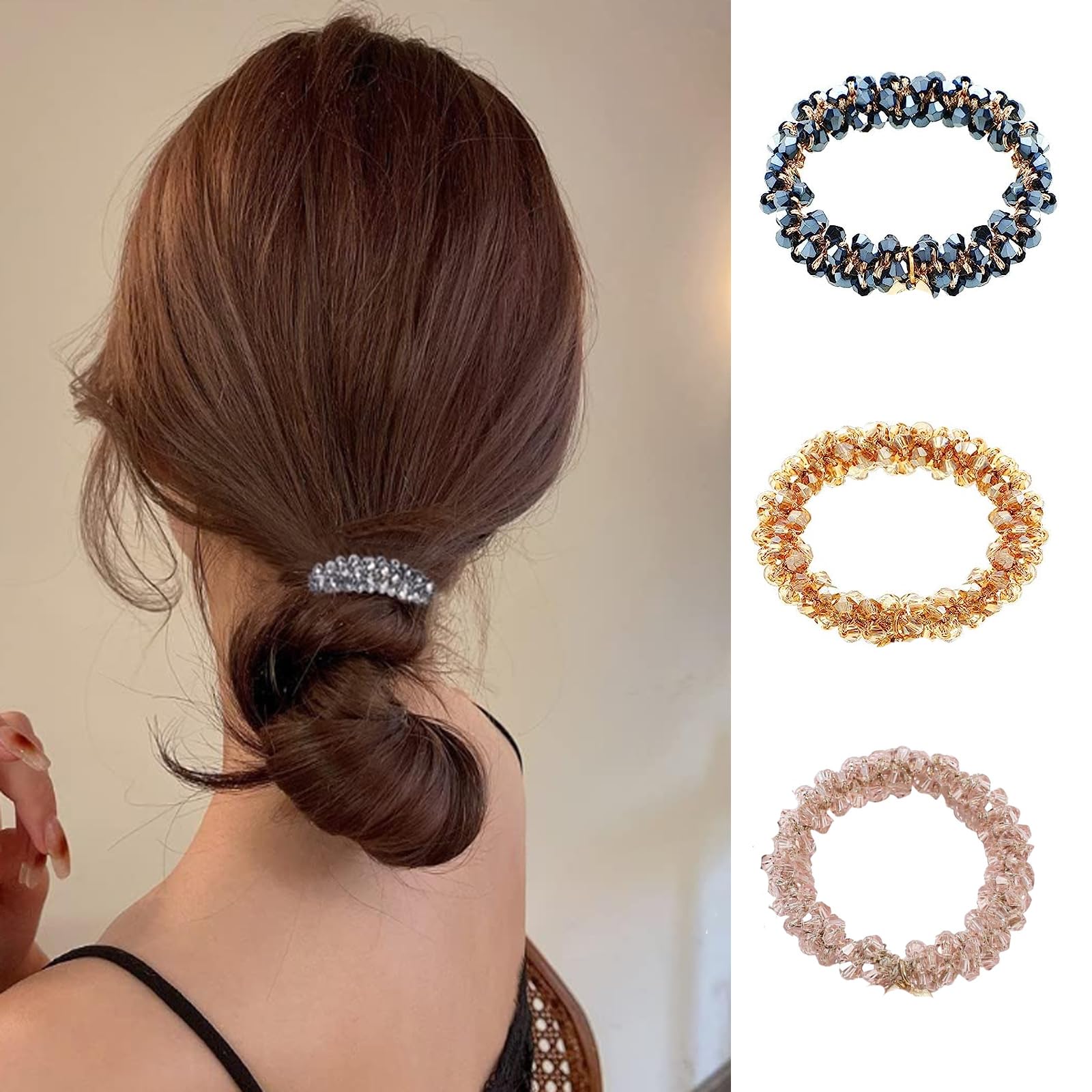 【美しい色】何百もの輝くクリスタルビーズで作られた豪華な髪飾り。 3色のクリスタルヘアネクタイを受け取ることができ、それぞれのニーズを満たすことができ、それぞれの服に合うことができます。ブレスレットとして手に着けたり、いつでもヘッドバンドネクタイとして使用して、美しさと優雅さを保つこともできます。