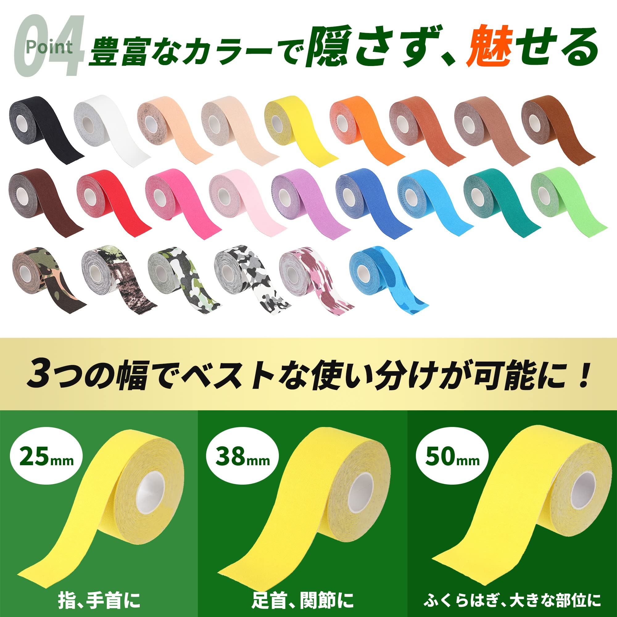 【現役整体師監修】 テーピング キネシオ 50mm × 5M 保護 汗に強い 伸縮 通気性 剥がれにくい 【デザイン×実用性】スポーツ 運動 ランニング テニス サッカー 筋トレ 捻挫 怪我予防 可動域制限 テーピングテープ キネシオロジーテープ 手首 足首 関節 肩 腰 肘 膝 全身 BEST FIT 5cm幅