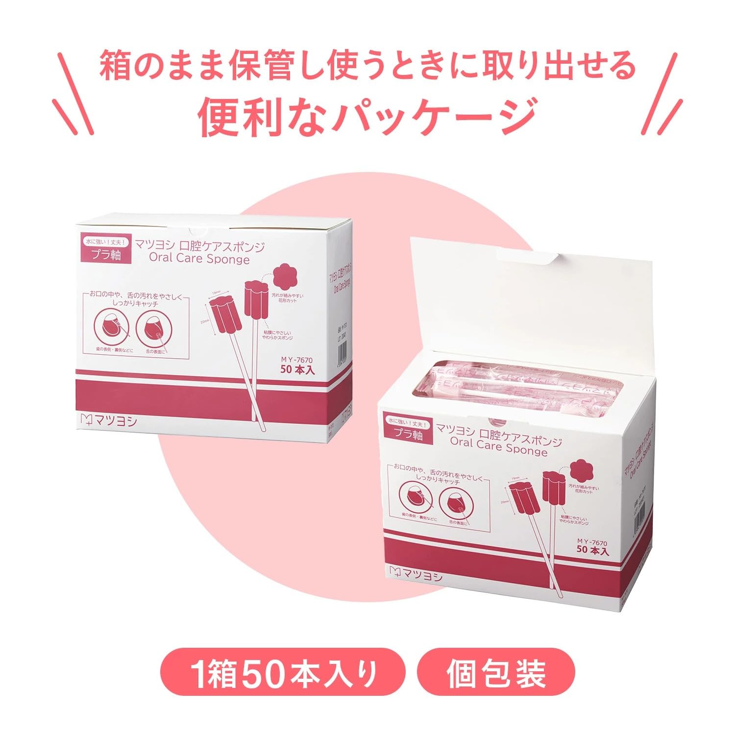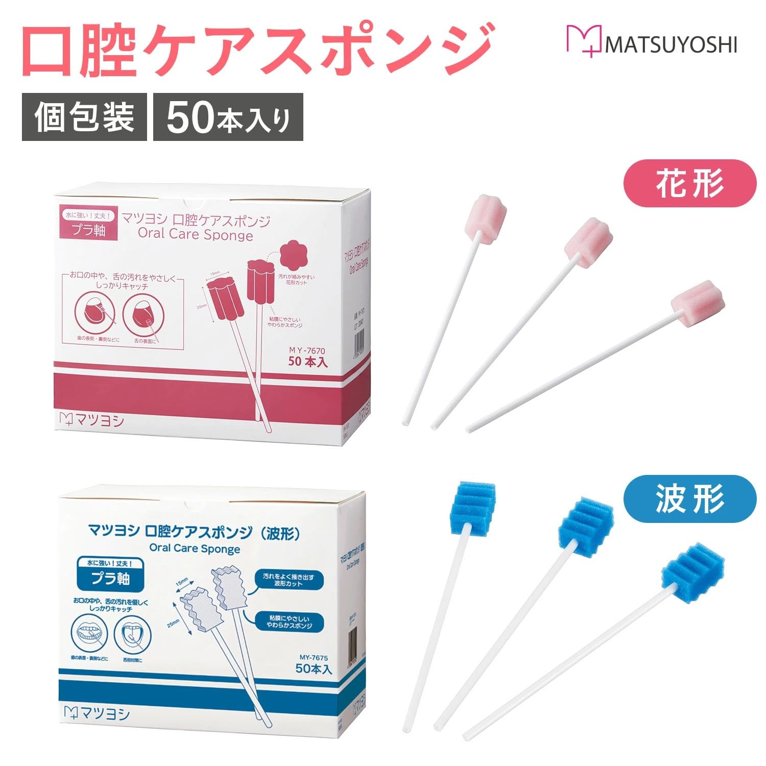 マツヨシ 口腔ケアスポンジ 50本 プラスチック軸 個包装 (花形 ピンク) 商品サイズ (幅×奥行×高さ) :20.2 x 16.5 x 11.4 cm 内容量:1 花型の溝が、お口に優しくフィット、汚れをしっかりキャッチ。 「マイスコ 口腔ケアスポンジ」 ●衛生的な個包装 ●弱ったお口の粘膜に優しいやわらかいスポンジ ●折れにくく、水に強いプラスチック軸を採用