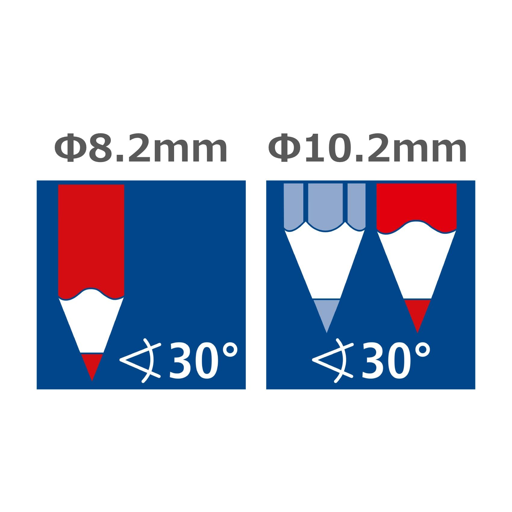 軸径8.2~10.2mmまでの六角軸はもちろん、丸・三角軸など様々な形状の色鉛筆を削ることができます。