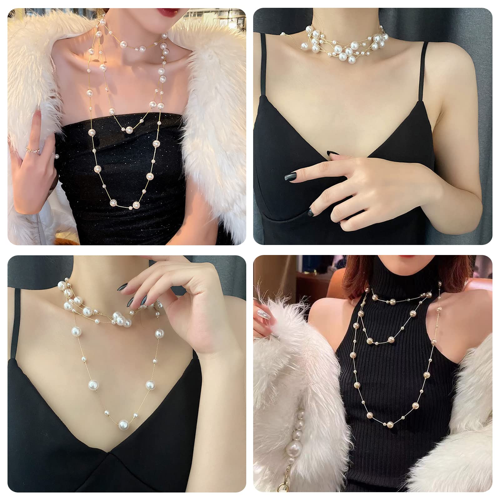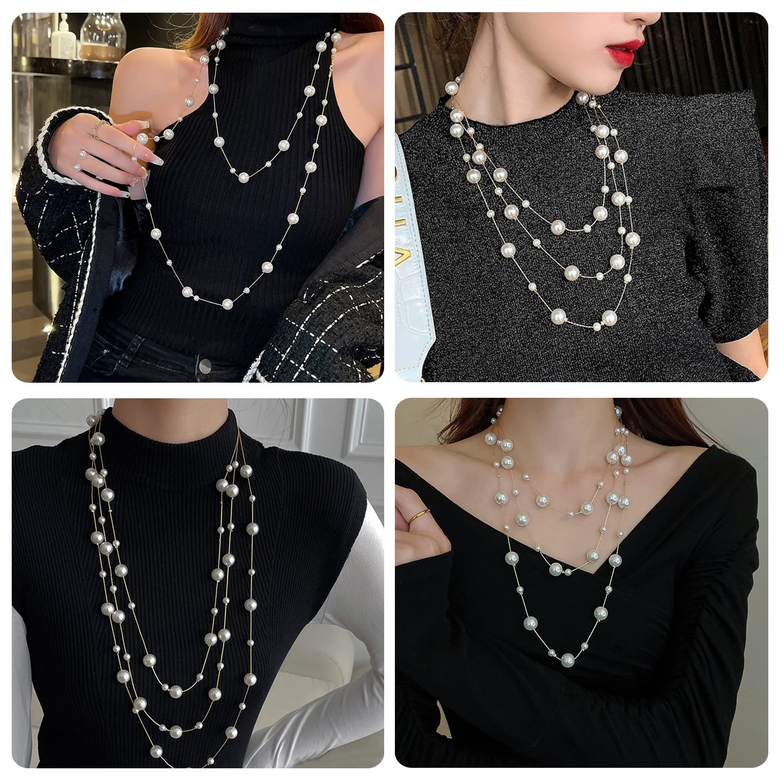 [Doyime] パールネックレス ロングネックレス おしゃれ 人気 長さ 調整可能 アクセサリー 結婚式 パーティー お呼ばれ 母の日 披露宴 入学式 卒業式