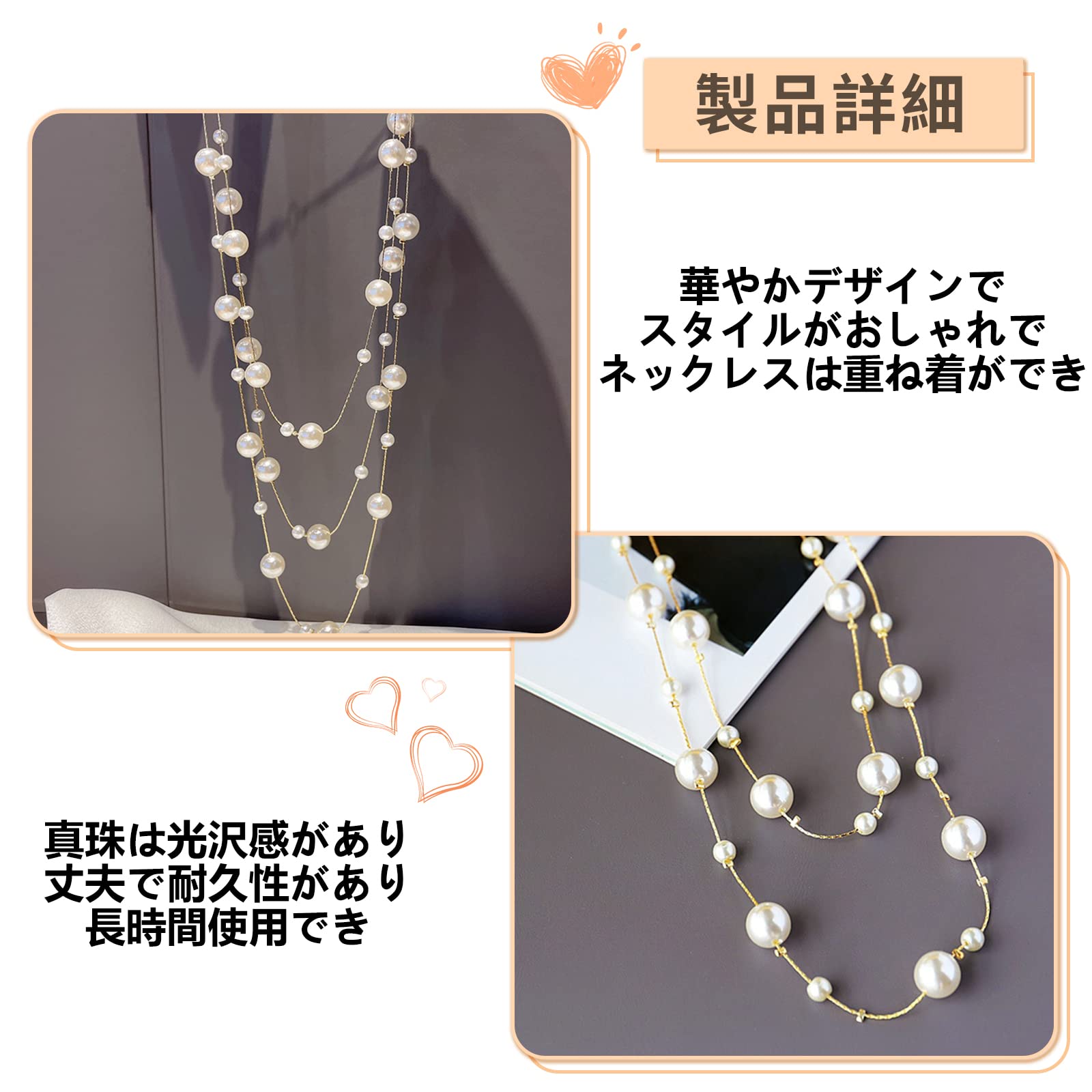【高品質の素材】ロングネックレスは高品質の合金材質と樹脂真珠を用いて製造する、丈夫で耐久性があり、防錆防水、壊れにくく、長時間使用でき、パールは樹脂材質を用いて製作する、光沢感があり、長時間光沢感を保つことができる。