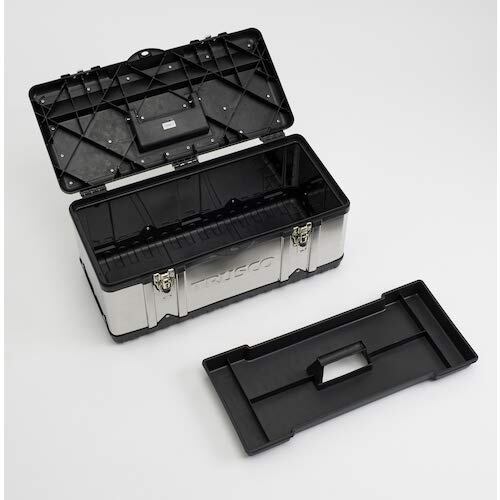 トラスコ中山(TRUSCO) ステンレス工具箱 シルバー Lサイズ TSUS-3024L 色:シルバー 外寸(mm)間口×奥行×高さ:582×298×255 有効内寸(mm)間口×奥行×高さ:543×235×215 シリンダ錠(別売):取付可 質量(kg):3.3 ●耐荷重:20kg●強度とデザイン性を兼ねたステンレスボディです。●持ちやすいワイドタイプハンドルが手のひらにフィットします。●小物収納に便利な中皿付です。
