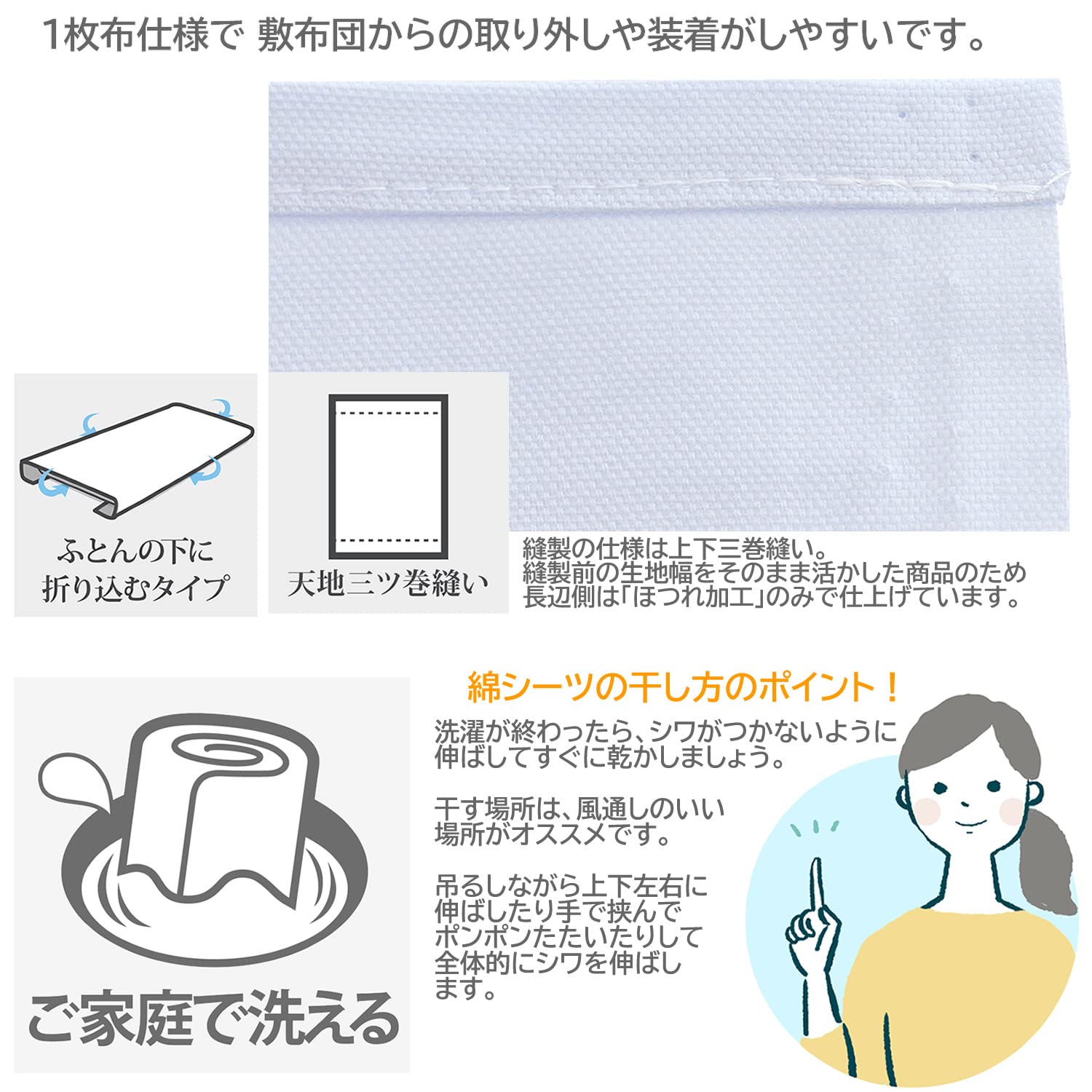 布団の下に織り込むタイプ。1枚布なので 敷布団からの取り外しや装着がしやすい。