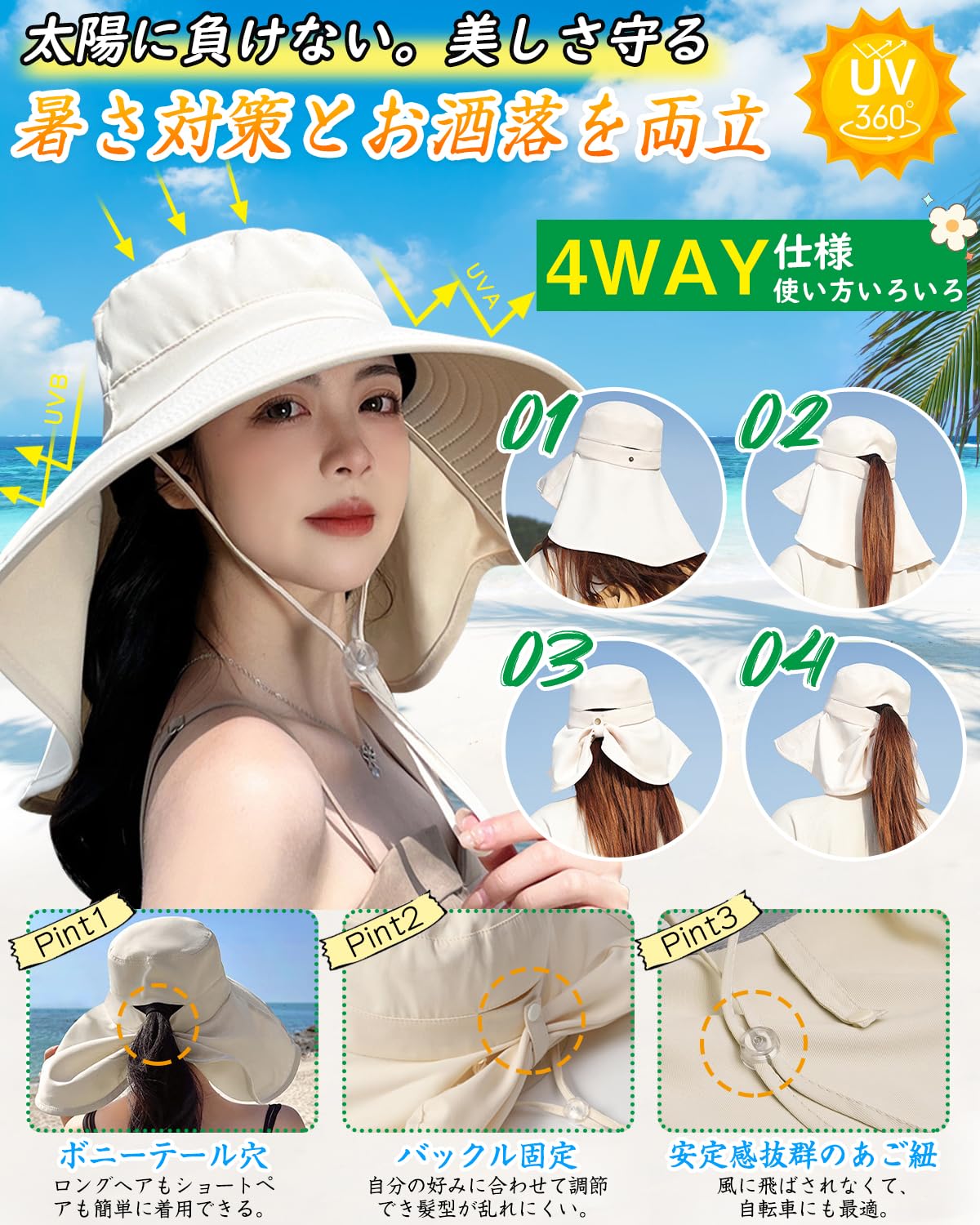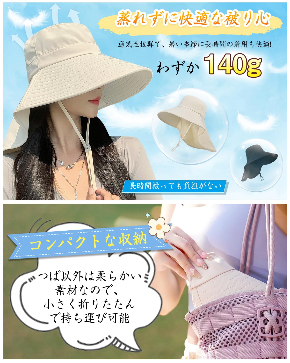 ![【新着特価】[LUYULAKI] UVカット帽子 レディース 日除け帽子 日焼け防止【12cm超つば広・首元まで360°日差しガード・UPF50+】ハット しっかり遮光 紫外線対策 折りたたみ 風に飛ばされない 撥水 小顔 自転車 登山 海水浴 アウトドア おしゃれ](https://baseec-img-mng.akamaized.net/images/item/origin/16f9c10b78b4eb941381711127ae0a8f.jpg?imformat=generic)
