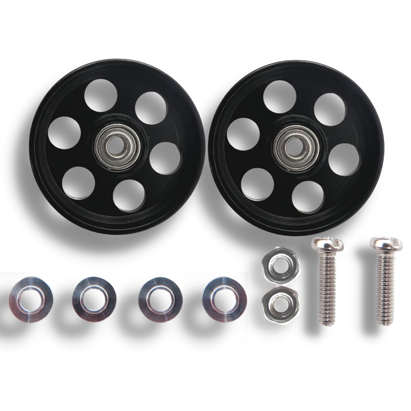 TAGATORON(タガトロン)19mm 丸穴オールアルミベアリングローラー 2個セット (1. ブラック)