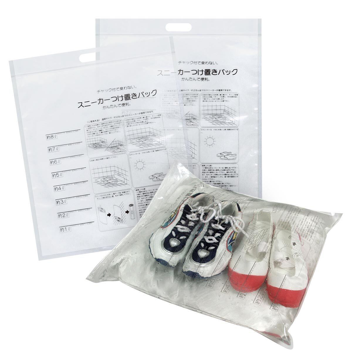 スニーカーや学校の上履きを「浸け置き洗い」する為の、専用ファスナーパック