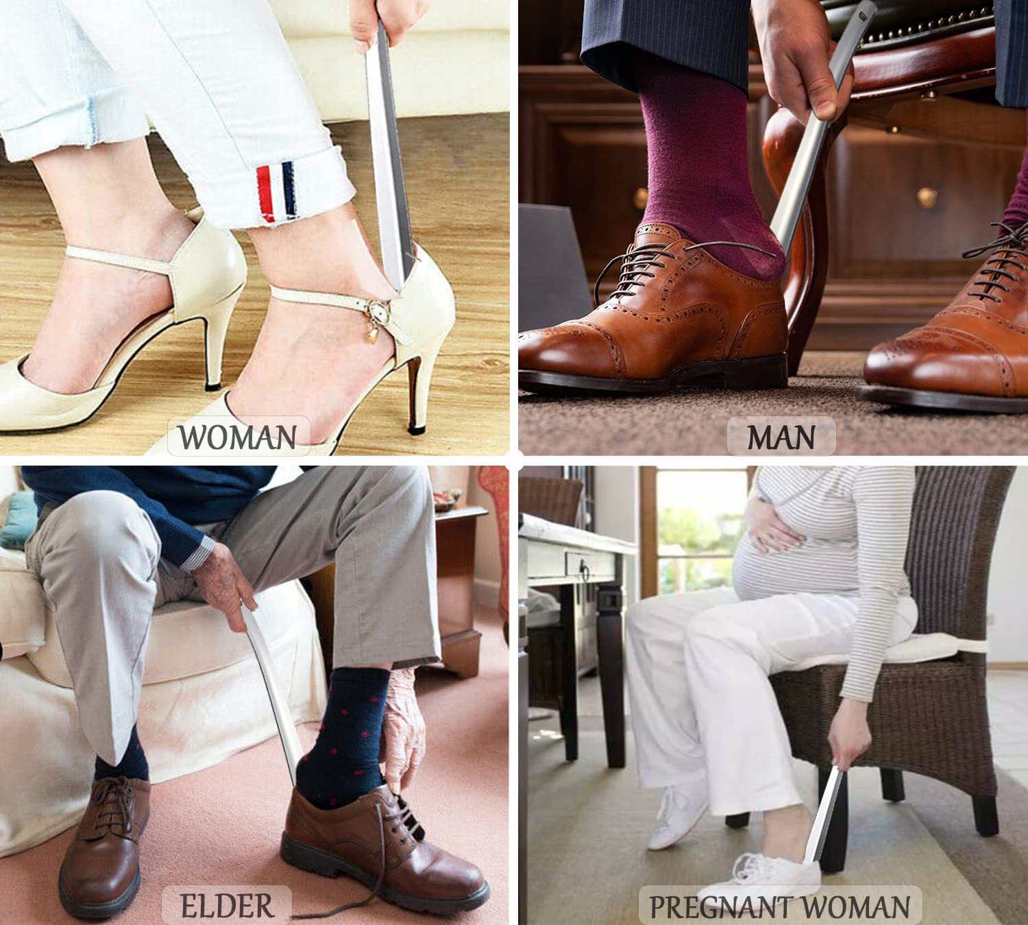 【 靴を簡単に 】 靴の裏を破壊したり、指を破すことなく簡単に履けることができます。手を清潔に保ち、靴に触れないようにしてください。 レザーシューズ、スポーツシューズ、ブーツなどに適しています。