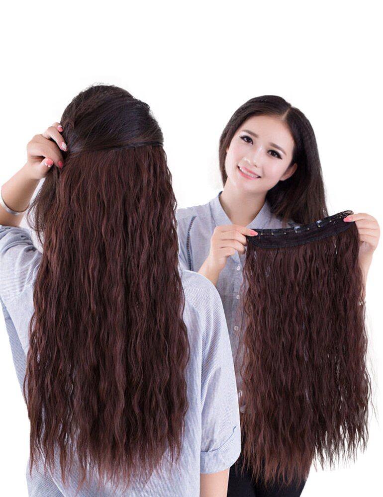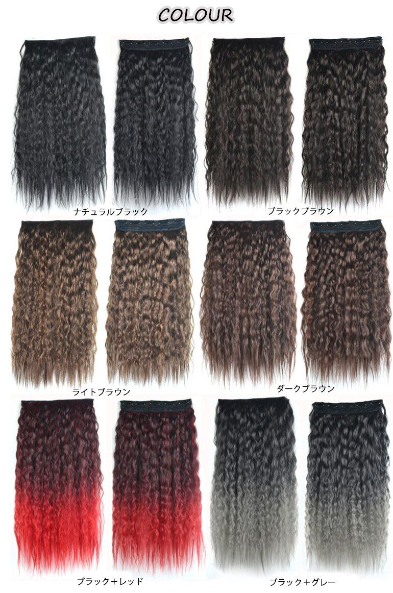 エクステ 襟足ウィッグ フラソバージュ ポイントウィッグ ロング クリップ 原宿系 フラダンス タヒチアンダンス ワッフル ワンタッチ YJWJ008-nblk