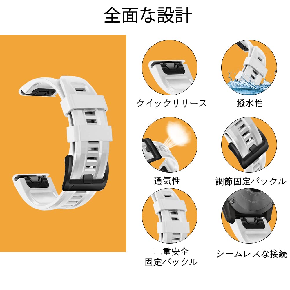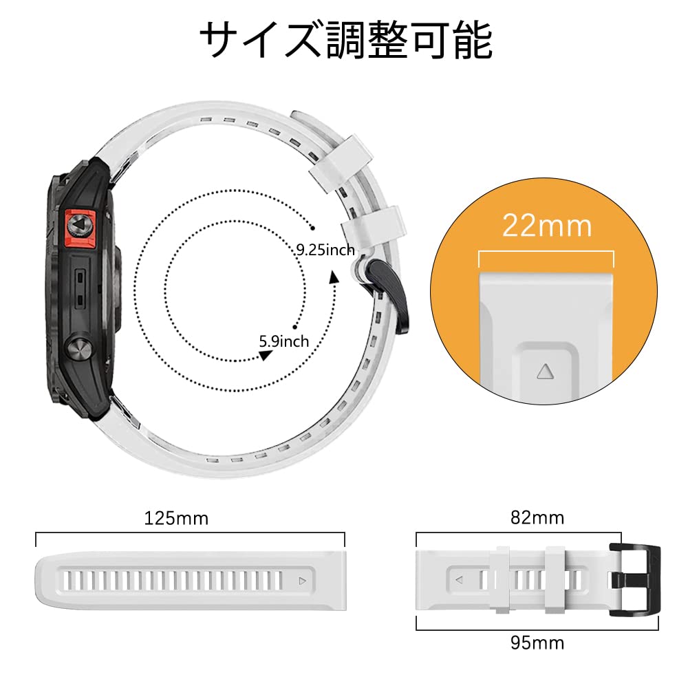 QuickFit 22mm バンド Garmin Fenix 8 47mm/Fenix 8 Sapphire AMOLED 47mm/Fenix 8 Sapphire Dual Power 47mm/Fenix E 47mm/Fenix 7 Pro Solar 対応 ストラップ シリコン ベルト 用 Fenix 7 Pro/7/6/5/6 Pro交換バンド (白)