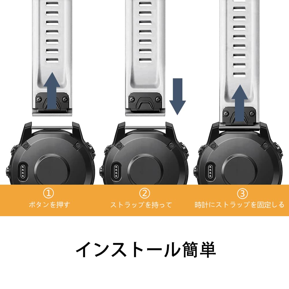 【対応機種】Garmin Fenix 8 47mm/Garmin Fenix 8 Sapphire AMOLED 47mm / Garmin Fenix 8 Sapphire Dual Power 47mm / Garmin Fenix E 47mm / Garmin Fenix 7 Pro Solar / Garmin Approach S70 47mm / Garmin Forerunner 965 / Garmin Fenix 7 / Fenix 6 GPS / Fenix 6 Pro GPS / Fenix 6 Pro Solar / Fenix 6 Sapphire GPS / Fenix 5/ Fenix5 Plus / Garmin EPIX / Garmin Approach S62 に対応バンド(QuickFit 22mm)です
