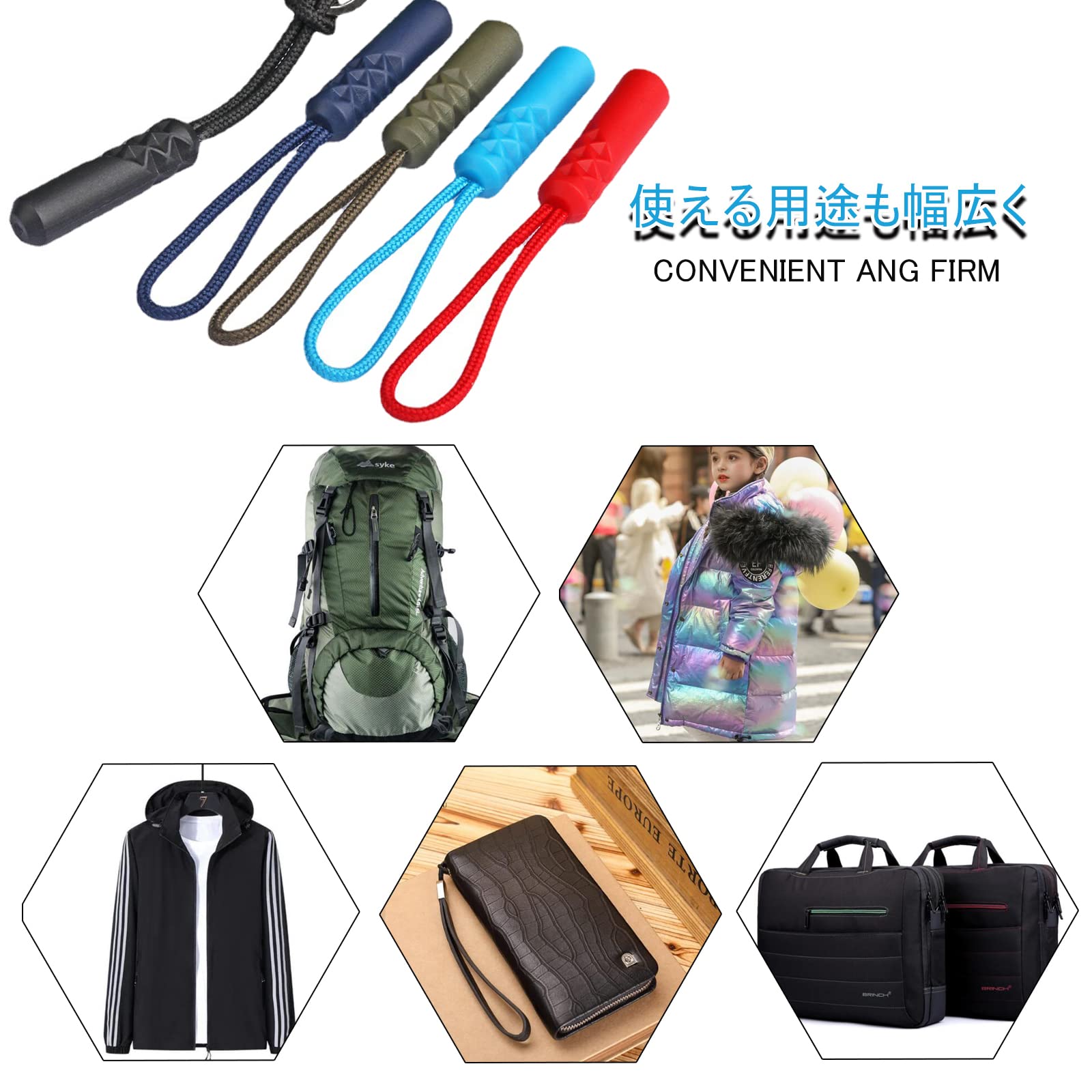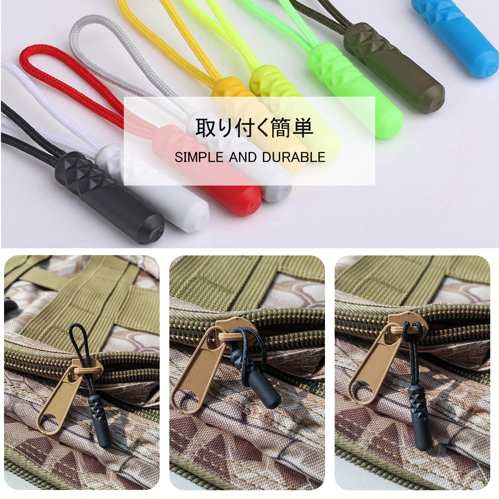 【幅広い用途】このジッパープルはバックパック、カバン、衣類、キャンプテント、寝袋、荷物、スーツケースなどに適用します。ジッパープルは衣類や荷物にマッチし、使いやすく、見た目も美しく、さまざまなスタイルの品質を際立たせています。携帯電話、キーリング、財布などに掛けることもできます。