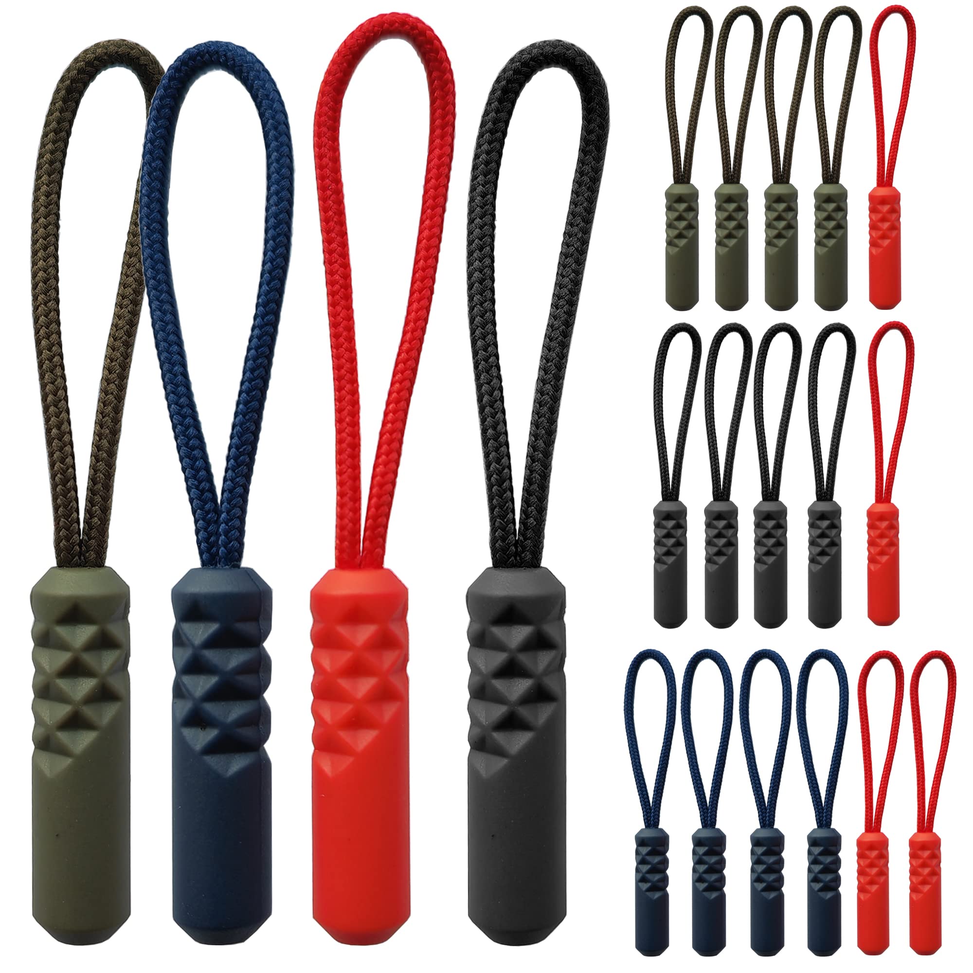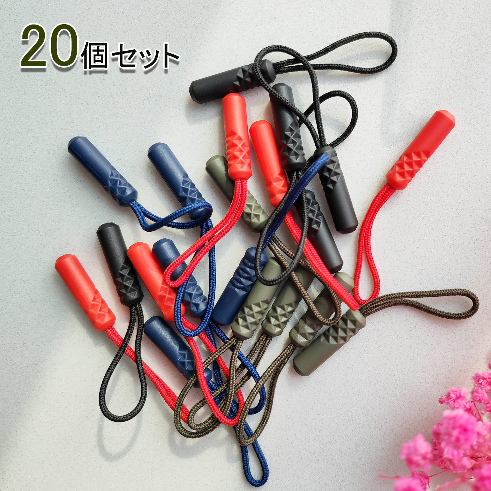 DY.2ten ジッパープル ジッパータブ ファスナープルコード ファスナープル 20本セット ジッパー ファスナー用 交換 プルコード ファスナープルタブ ファスナー 引き手 取り付け簡単 つかみやすい 滑り止め 4カラー 各5本セット