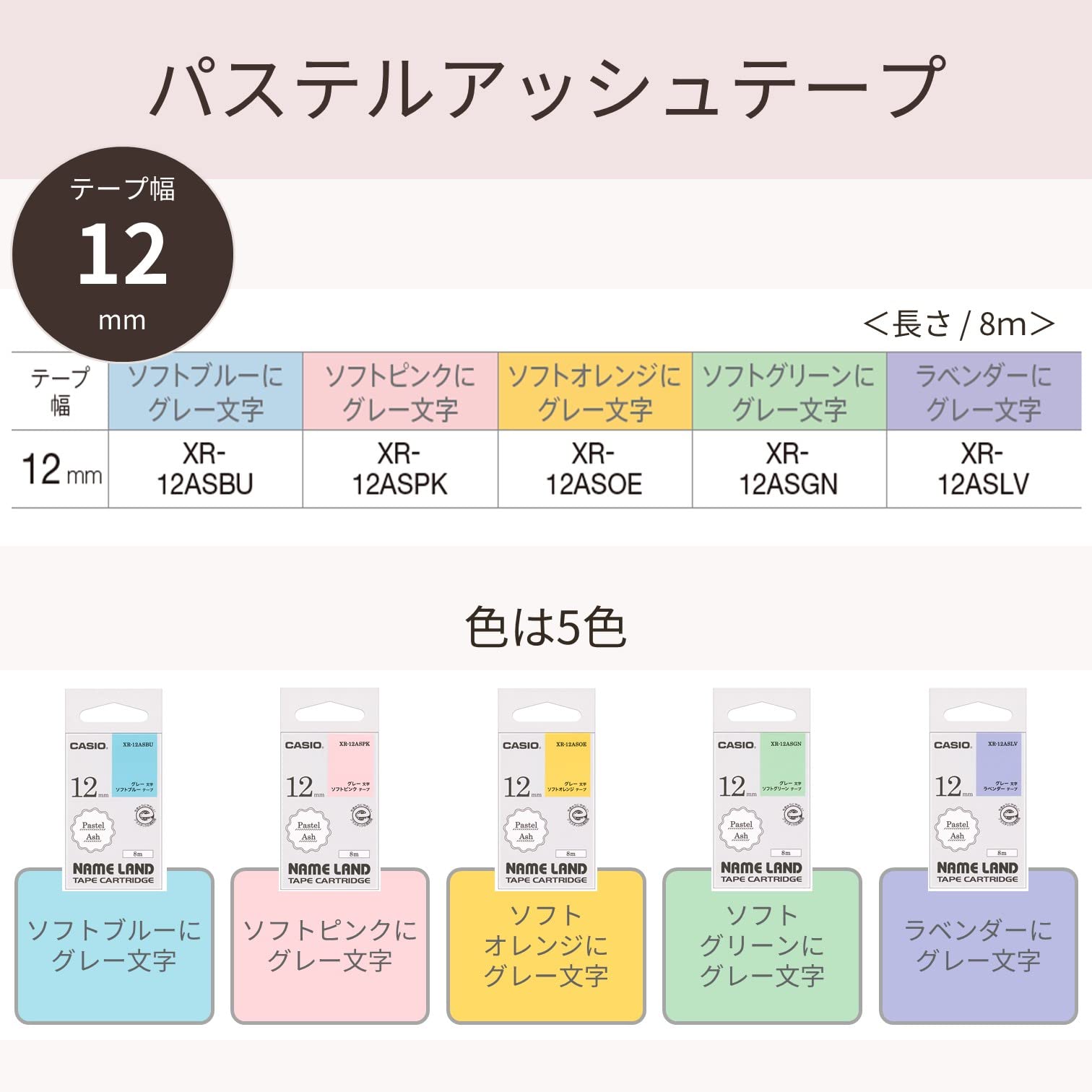 カシオ ラベルライター ネームランド パステルアッシュテープ 12mm XR-12ASPK ソフトピンクーにグレー文字 製品型番:XR-12ASPK テープ種類:パステルアッシュテープ テープ幅×長さ:12mm×8m タイプ:ソフトピンクにグレー文字 すっきりキレイで家族みんながスムーズ カシオ ネームランド純正テープ