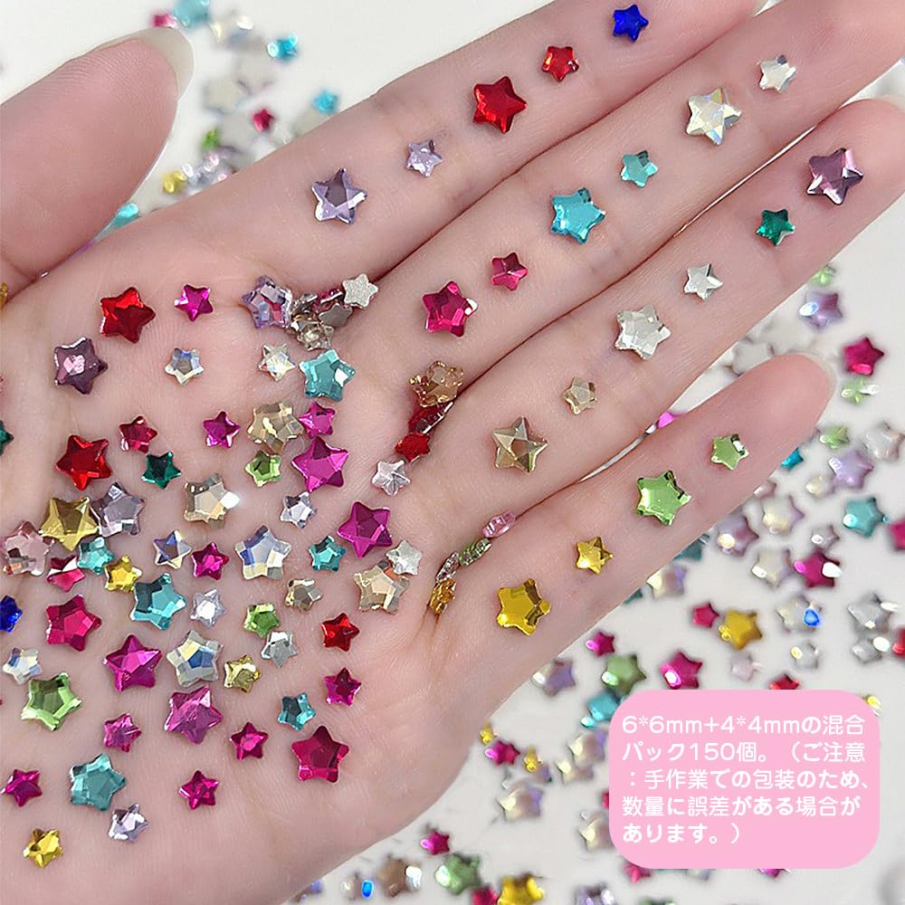 ネイルパーツ 星 立体 3D 150個セット カラフル キラキラ 大きさの混合 スター ネイルストーン ジュエリーパーツ ネイルデコパーツ レジンパーツ 手芸 DIY