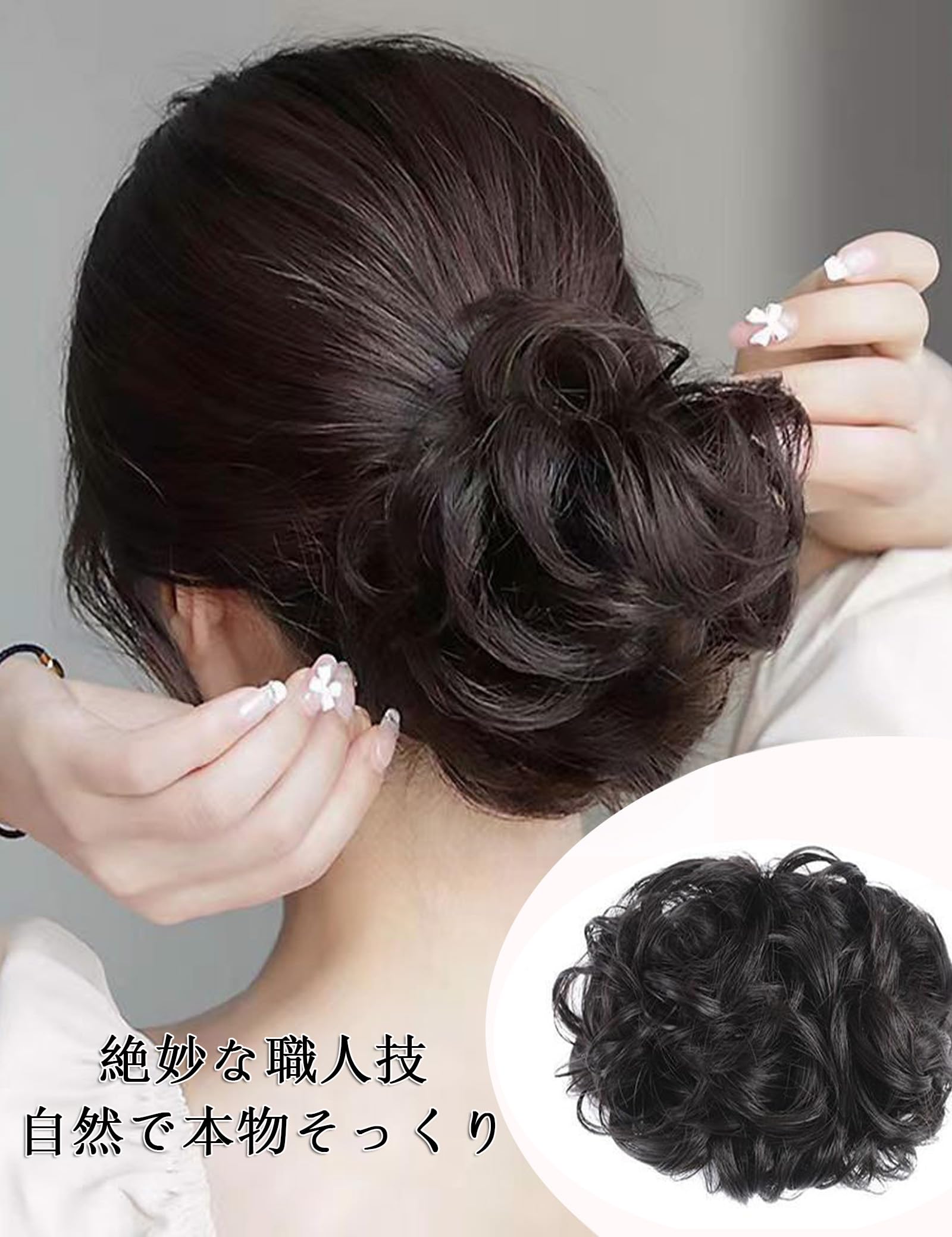 【特価処分】お団子 ウィッグ シニヨン 和装 ウィッグ 髪飾り つけ毛 レディース 日常 付け髪 ボリュームアップ おしゃれ ピッタリな髪型 和装 装着簡単 自然 卒業式 成人式 結婚式 普段使い(ダークブラウン)