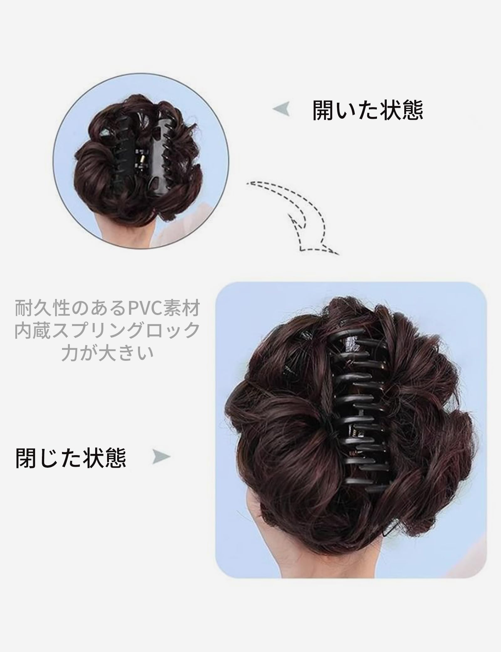 ?【装着簡単】このおまんじゅうおだんごウィッグは8枚歯のグリッパークリップと組み合わされており、装着が簡単で、瞬時に変身できます。髪の色に合ったつけ毛バッグを選ぶだけで、装着後も安心のグリッパー設計で、ウィッグが落ちてしまう恥ずかしさを防ぎます。